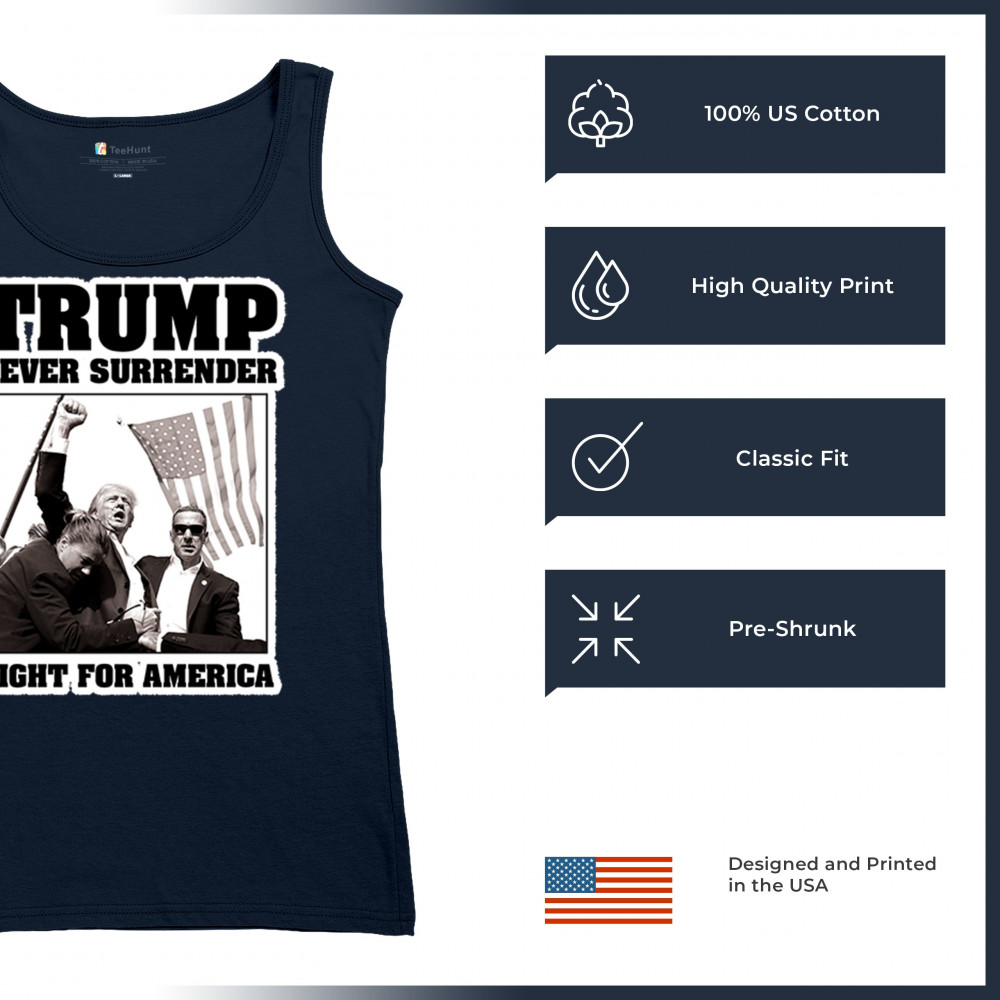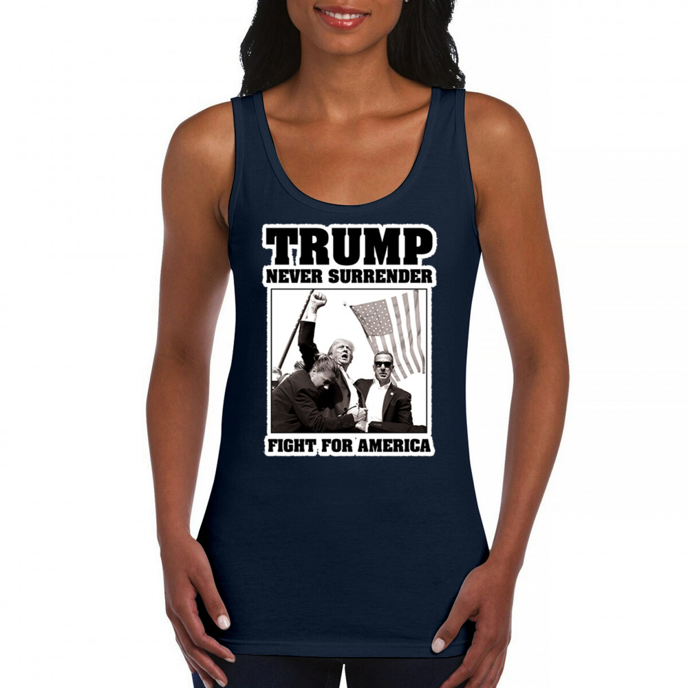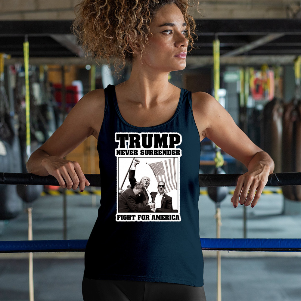 Express your unwavering support with the bold "Trump Never Surrender" design, perfect for rallies and everyday wear. Durable and stylish, show your patriotism proudly.