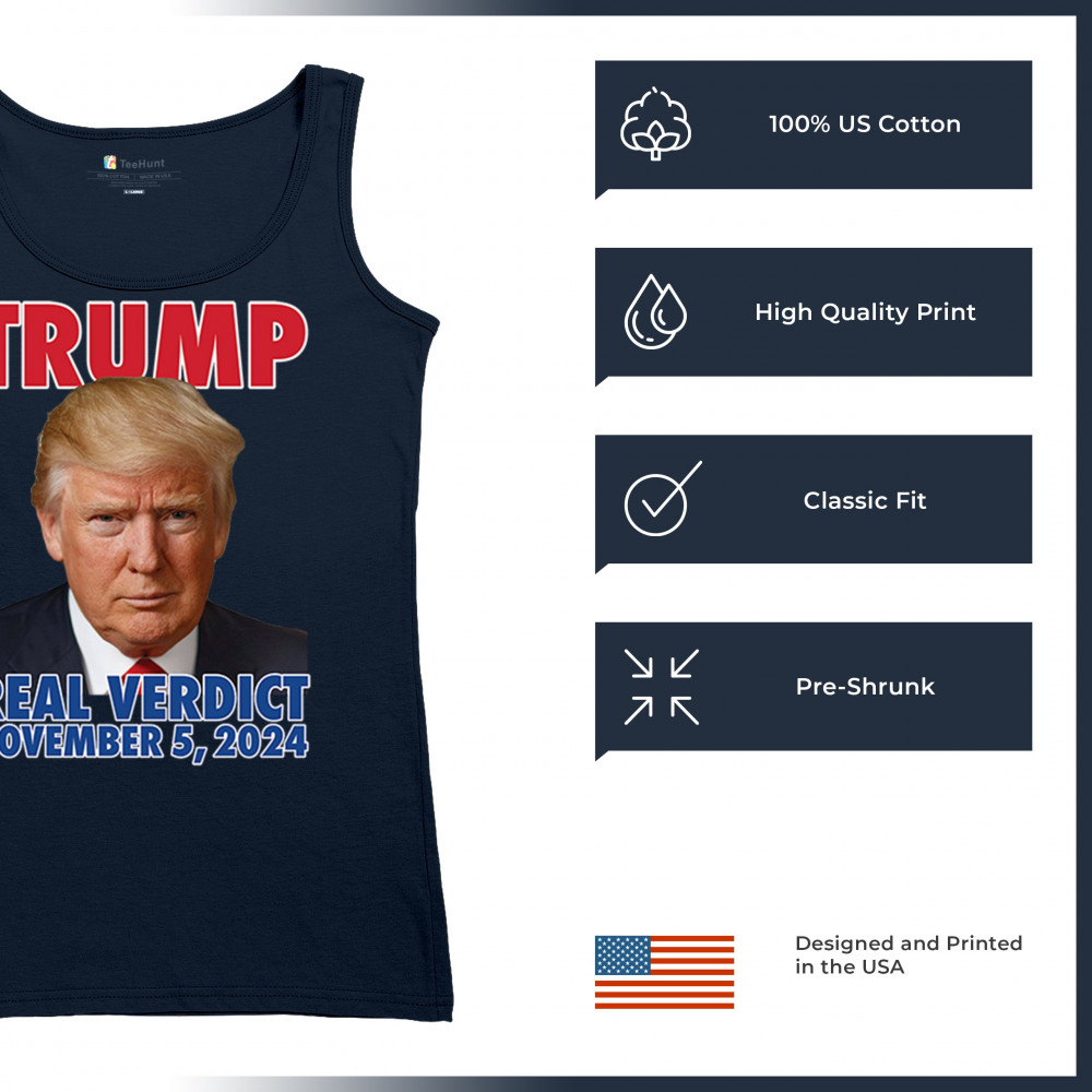 Show your support for Donald Trump with our bold "Real Verdict November 5, 2024" design. Perfect for Trump supporters, MAGA movement enthusiasts, and those who mock Biden with the "Let's Go Brandon" slogan.