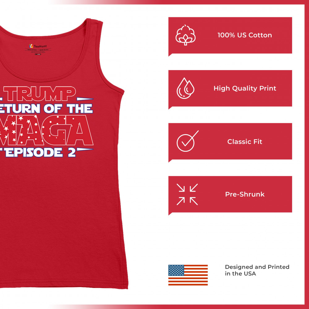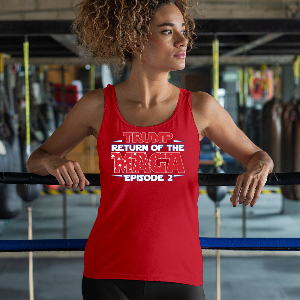 Make a bold statement with the "Return of the MAGA: Episode 2" design, celebrating Donald J. Trump and the Red Wave movement. Perfect for conservatives, Trump supporters, and Republicans who champion America First values, freedom, and the fight for a better future. A must-have for those who never surrender and stand for the people's mandate.
