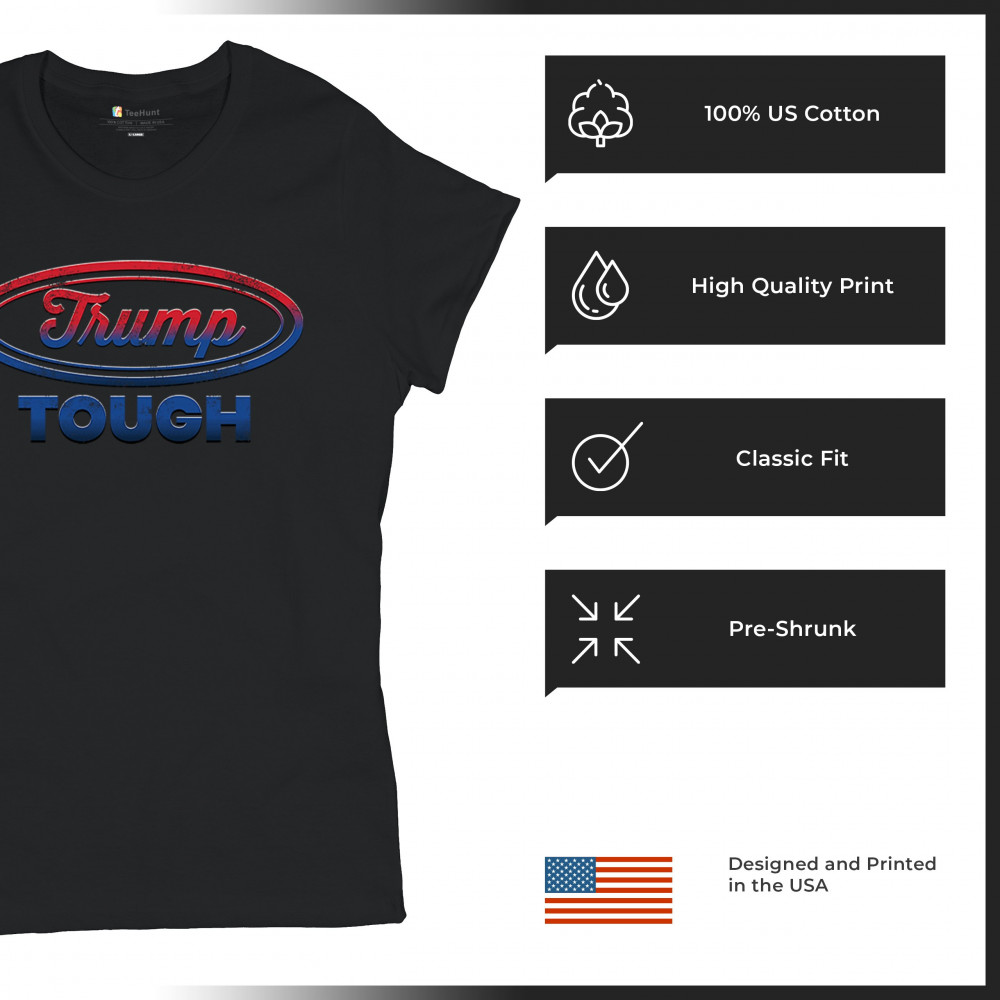 Embrace the "Trump Tough" spirit—show your support for conservative values, America first, and the American flag. Perfect for rallies or daily wear.