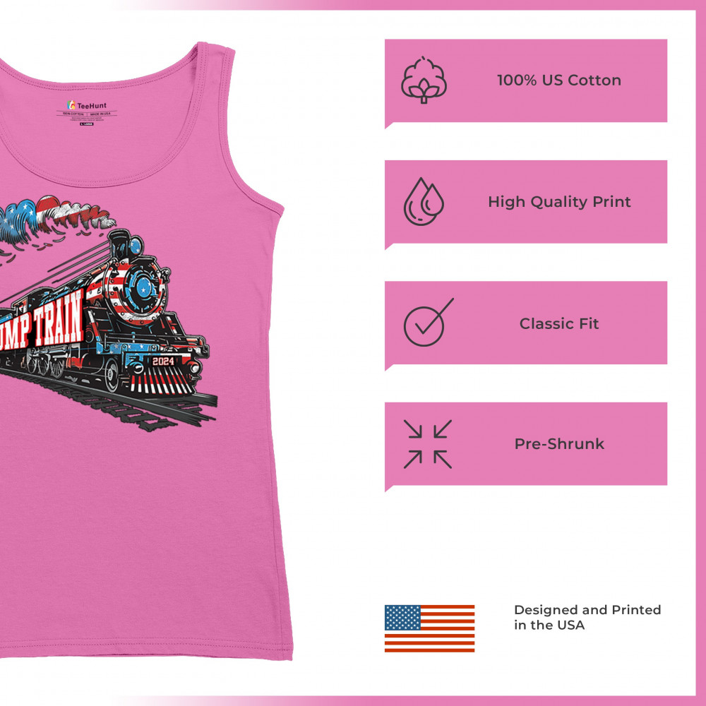 Celebrate the Trump Train with this bold, patriotic design. Featuring a steam engine wrapped in the American flag, this tee is perfect for Trump supporters and conservatives looking to make a statement. Join the Red Wave, fight for victory, and showcase your support for the 47th President. Whether at rallies or casual events, this design represents we the people have spoken and the push for 4 More Years.