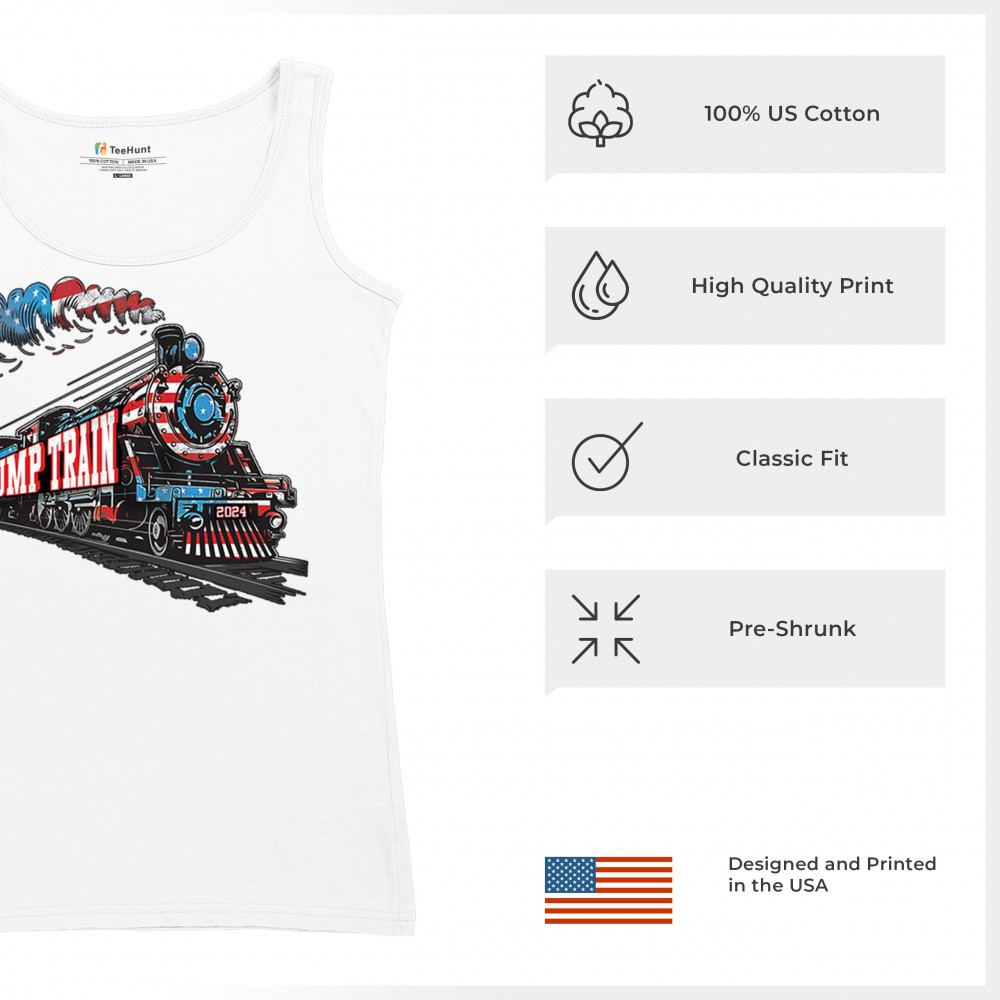 Celebrate the Trump Train with this bold, patriotic design. Featuring a steam engine wrapped in the American flag, this tee is perfect for Trump supporters and conservatives looking to make a statement. Join the Red Wave, fight for victory, and showcase your support for the 47th President. Whether at rallies or casual events, this design represents we the people have spoken and the push for 4 More Years.