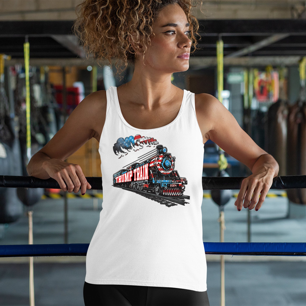 Hop on the Trump Train and support America First! This bold, patriotic tee is perfect for Republicans, conservatives, and the Red Wave movement.