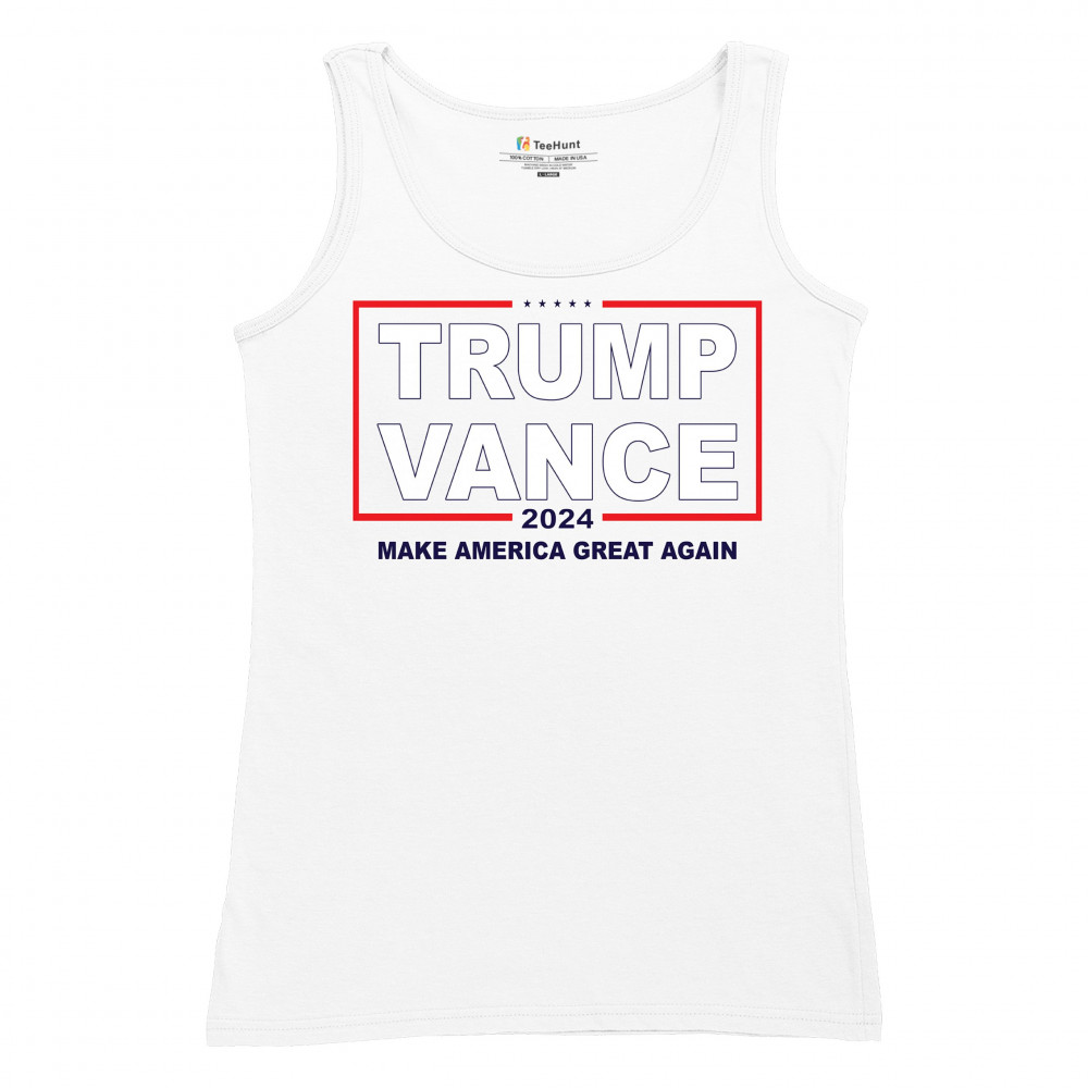 Showcase your support for the Trump-Vance 2024 campaign with this eye-catching design. Emblazoned with the "Make America Great Again" slogan, this artwork is perfect for conservative rallies, political gatherings, or simply expressing your political views. The striking red, white, and blue colors highlight your American pride and dedication to the conservative movement. Comfortable and stylish, this design is a great addition to any wardrobe, allowing you to stand out and make a statement wherever you go.