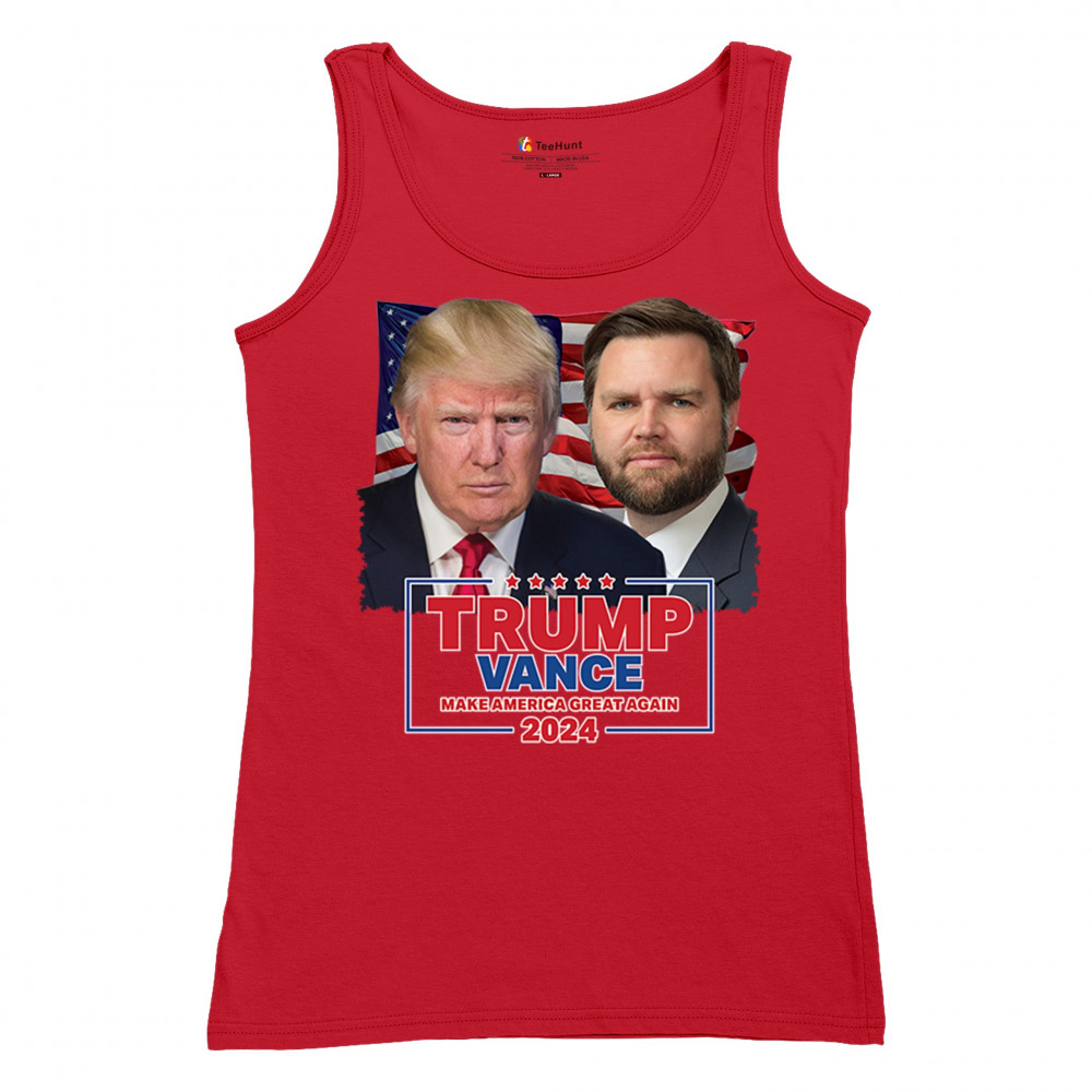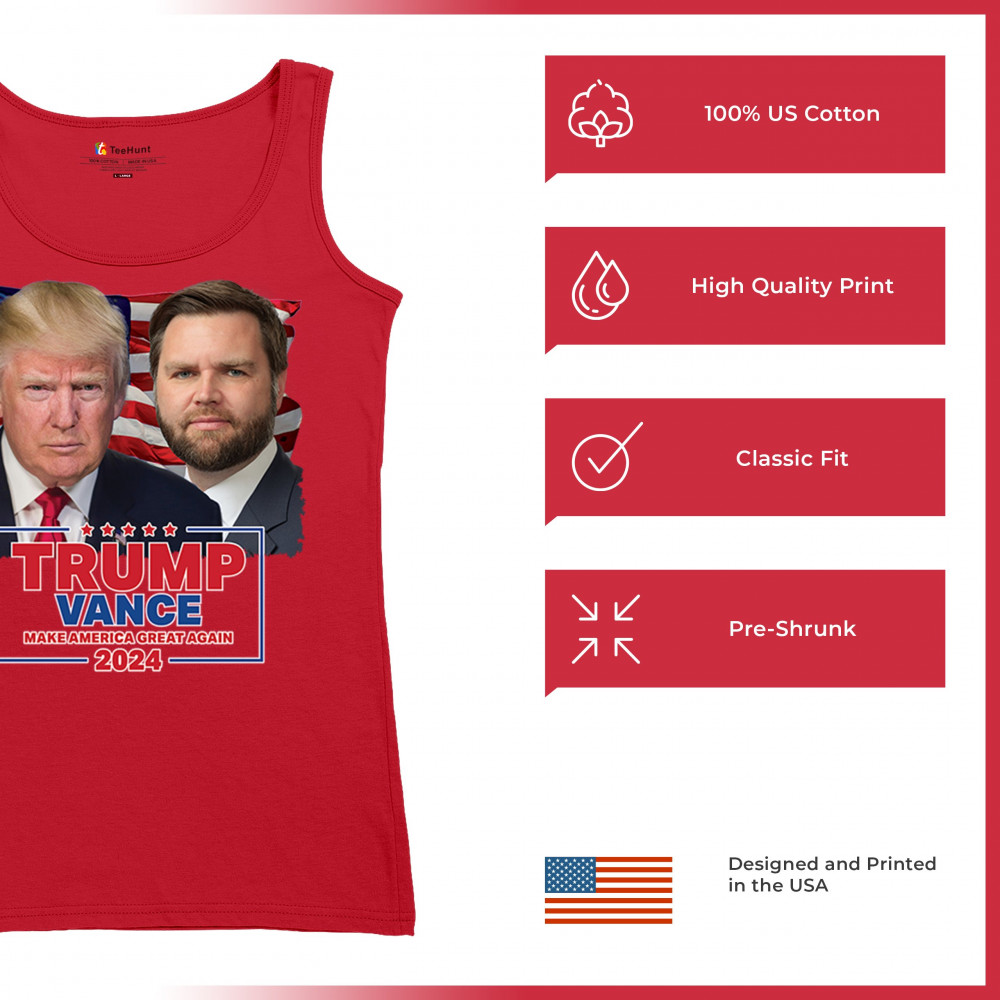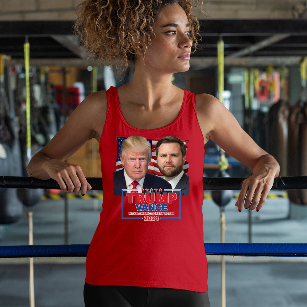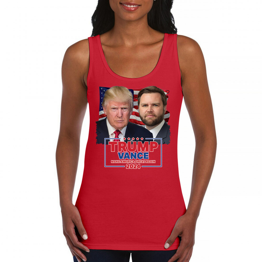 Show your support for Trump-Vance 2024 with this bold design featuring Trump and Vance against the American flag. Perfect for rallies and political events.