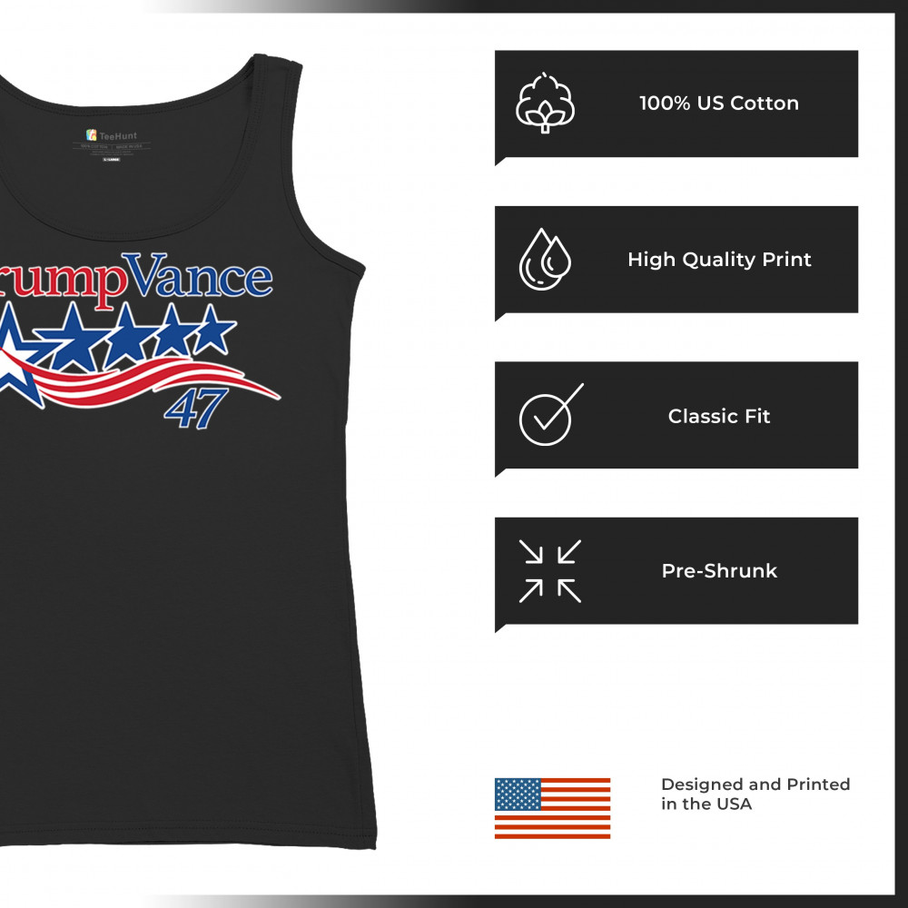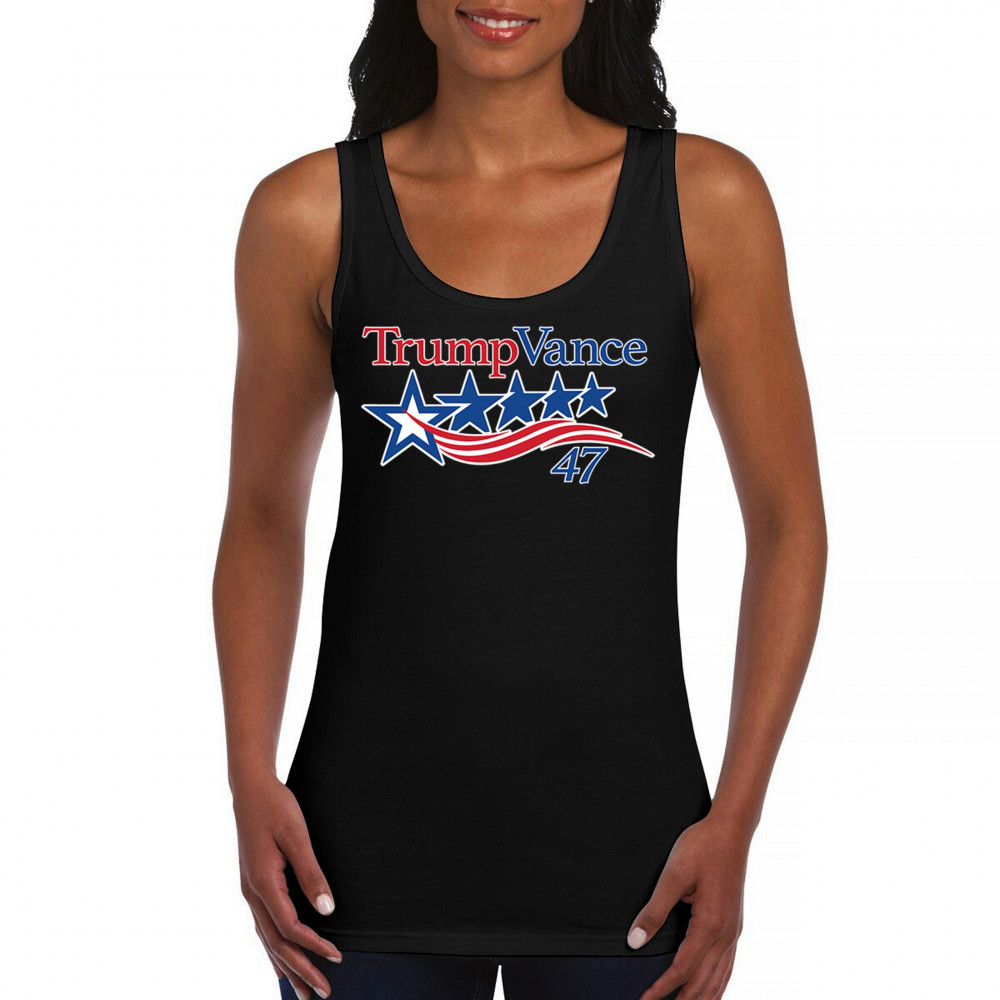 TRUMP VANCE 47 women's tank top maga president elect red wave 4 more years black