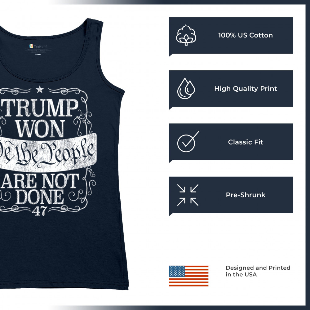 Celebrate the power of "We the People" with this "Trump Won" design, a rallying cry for those who support Donald J. Trump and the Republican movement. Featuring bold typography and a message of resilience, it embodies the conservative fight for victory and unity. Perfect for events, gifts, or everyday wear, it’s a powerful statement of faith in the party of common sense and the people's mandate.