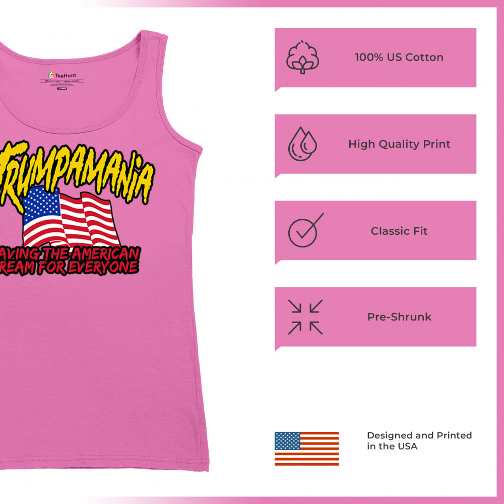 Celebrate the American dream with this powerful "Trumpamania" design. Perfect for rallies and beyond, this design captures the essence of conservatism and the fight for freedom. It’s a testament to the unstoppable spirit of those who trust in God and reject government overreach. With an American flag proudly displayed, this design aligns with the values of victory, rebellion, and unwavering support for Trump.
