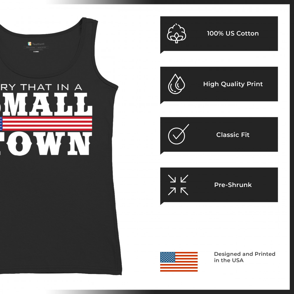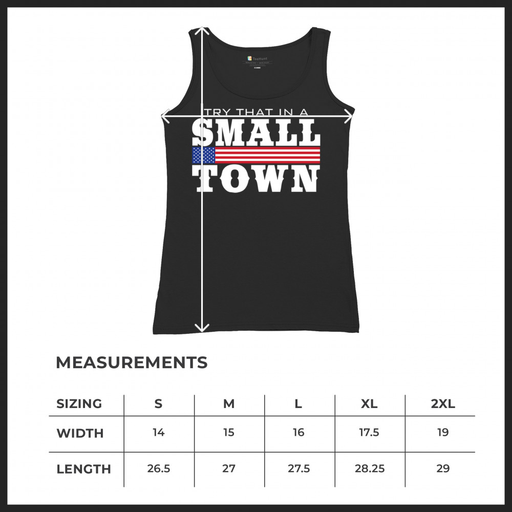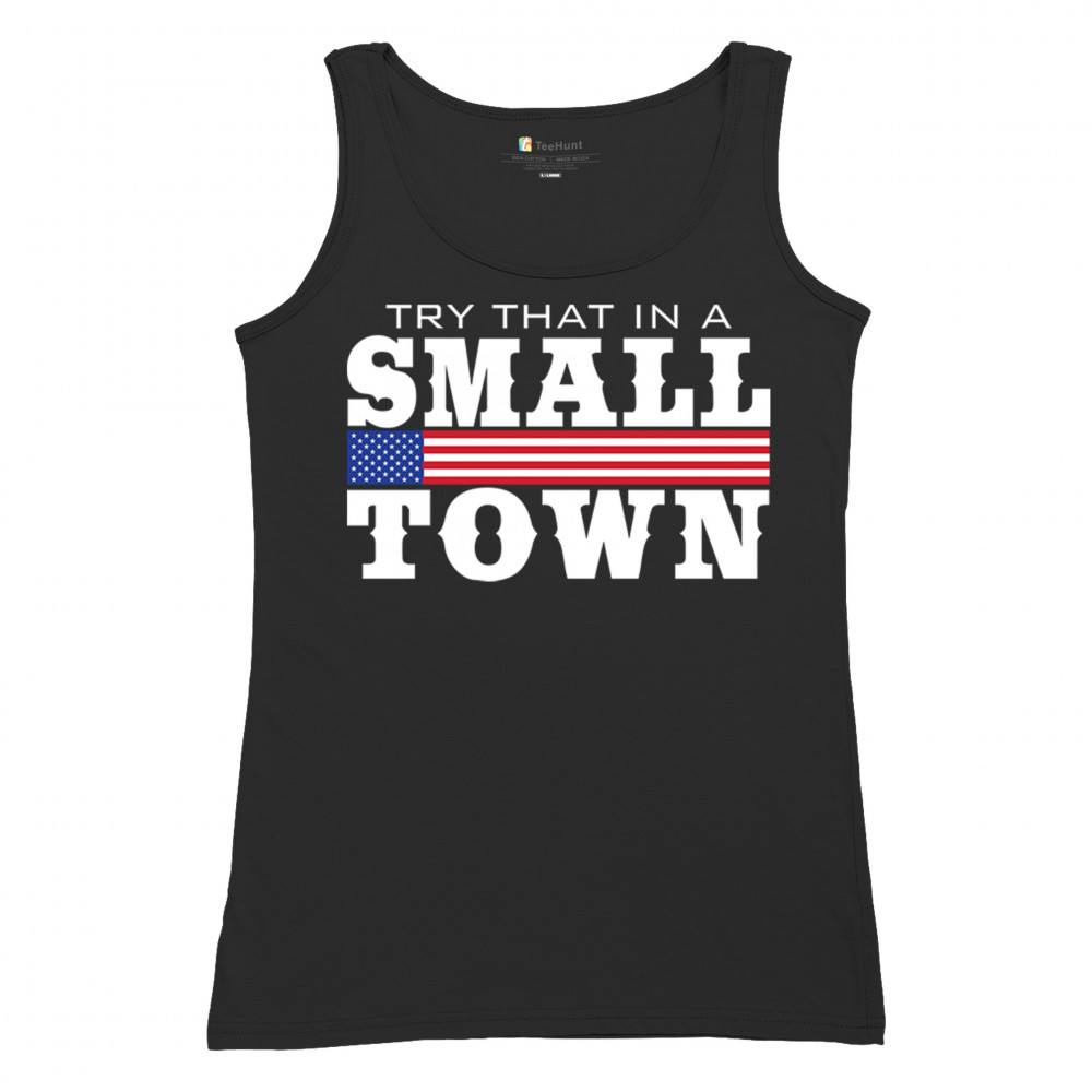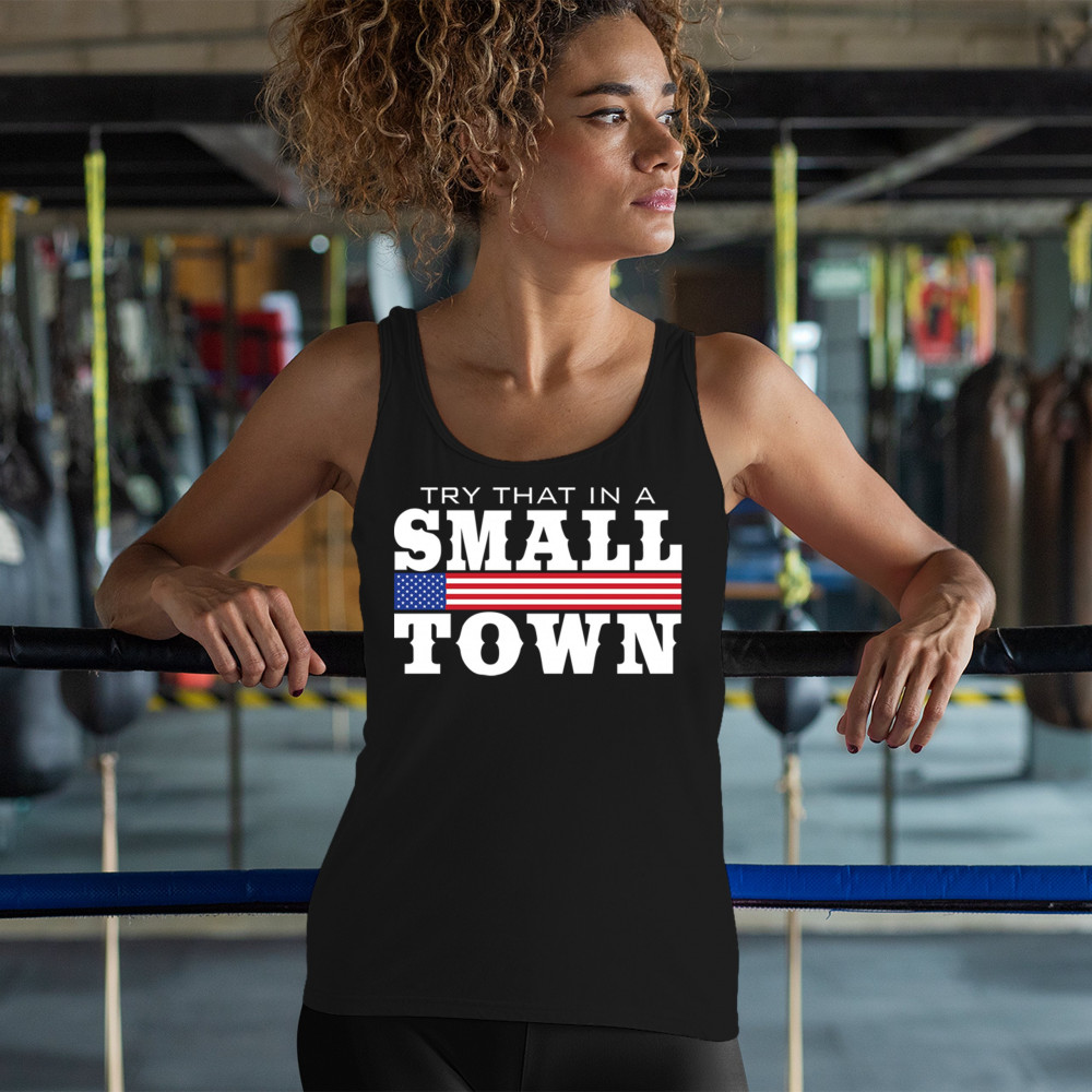 Celebrate small-town pride with our "Try That In A Small Town" design. Perfect for patriotic events, it features a bold American flag graphic.