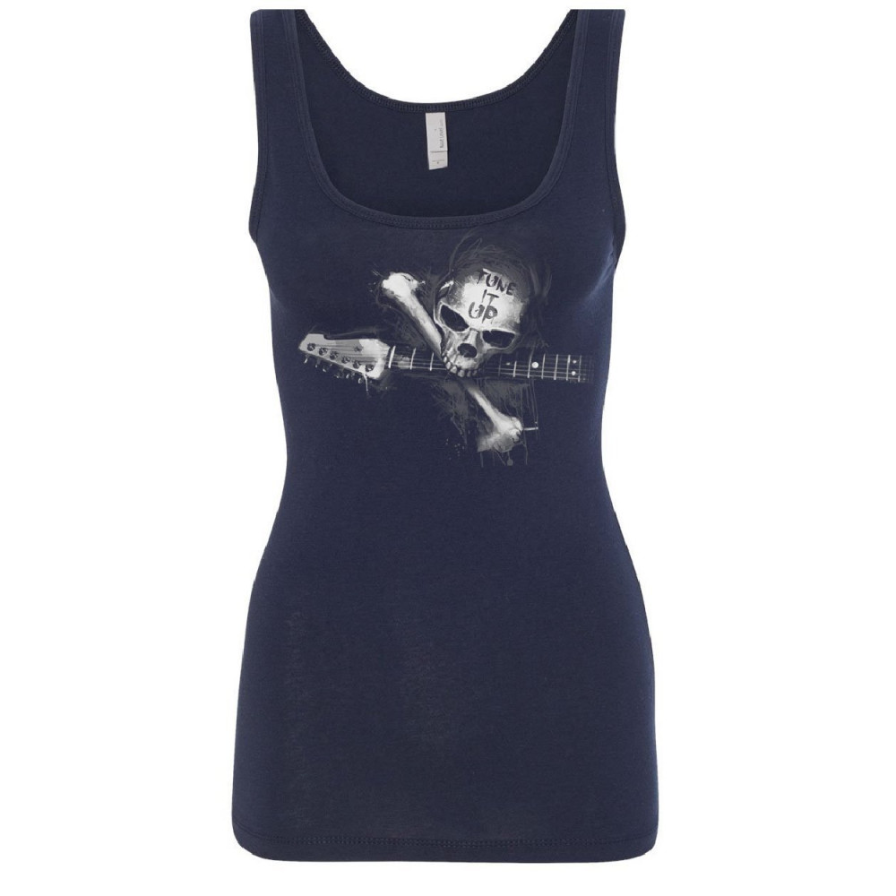 TUNE IT UP MUSIC women's tank top skulls guitar death metal hard rock top navy blue