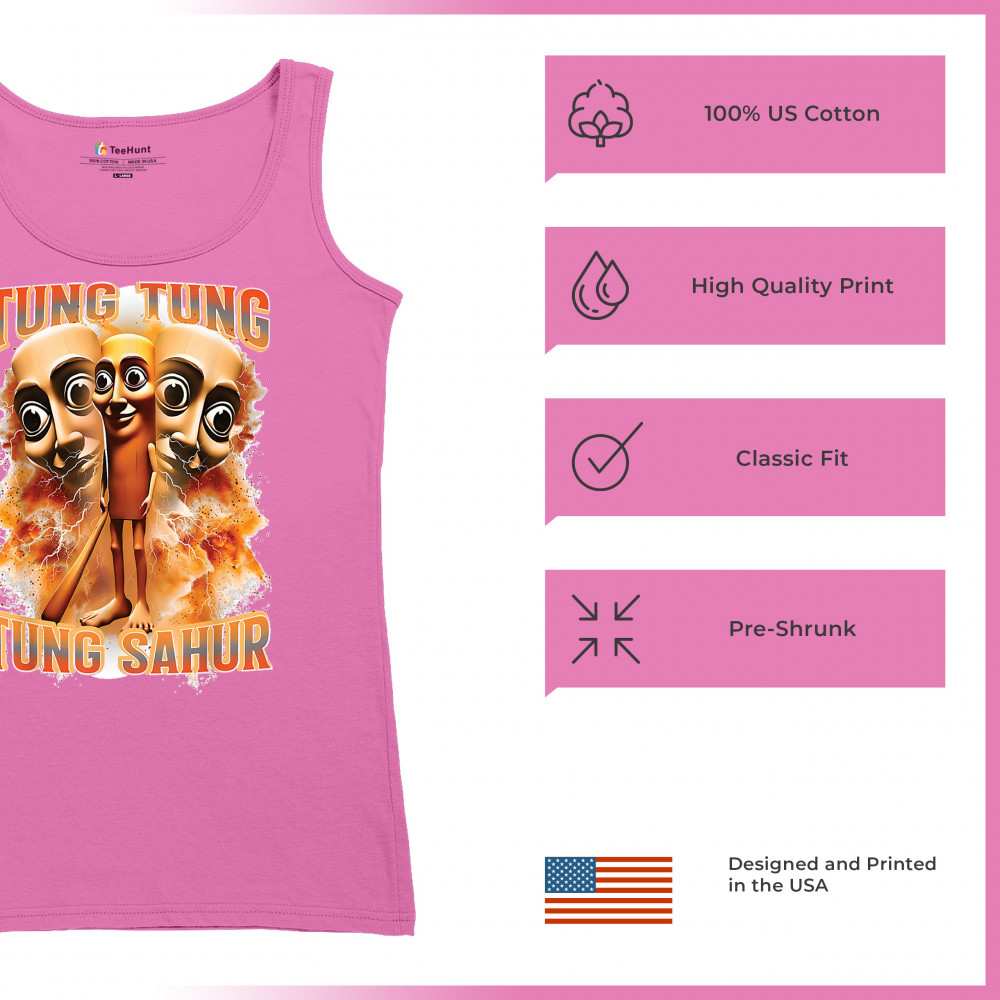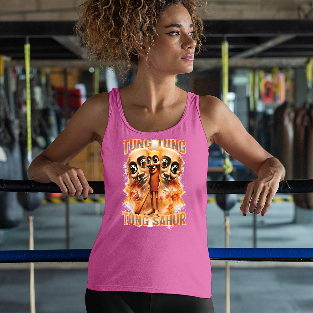 Brace yourself for pure meme insanity with the Tung Tung Tung Sahur shirt—a cursed-core fever dream built from TikTok chaos and Gen Z humor. This design blends internet meme culture, ironic fashion, brainrot visuals, and Gen Alpha absurdity. Perfect for those who wear memes, laugh at chaos, and live for viral trends.