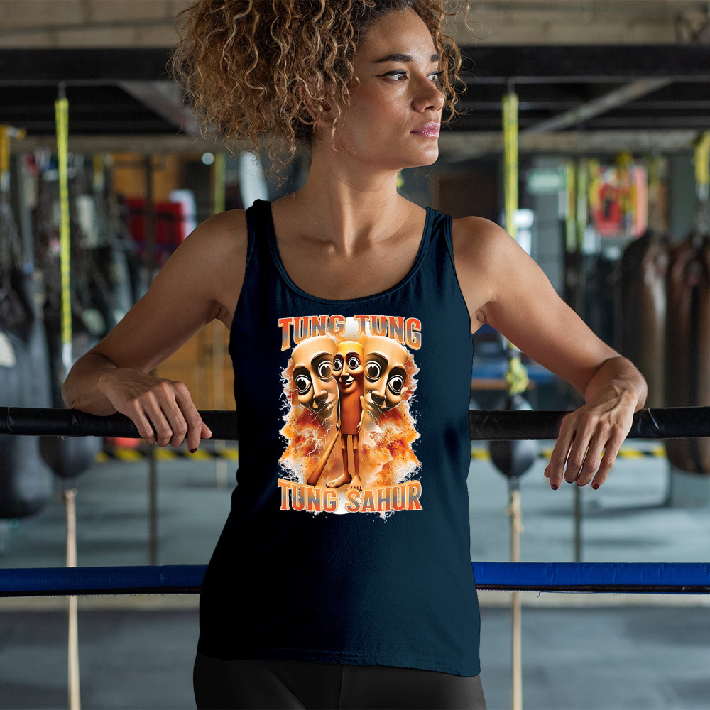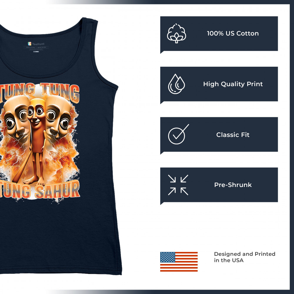 Brace yourself for pure meme insanity with the Tung Tung Tung Sahur shirt—a cursed-core fever dream built from TikTok chaos and Gen Z humor. This design blends internet meme culture, ironic fashion, brainrot visuals, and Gen Alpha absurdity. Perfect for those who wear memes, laugh at chaos, and live for viral trends.