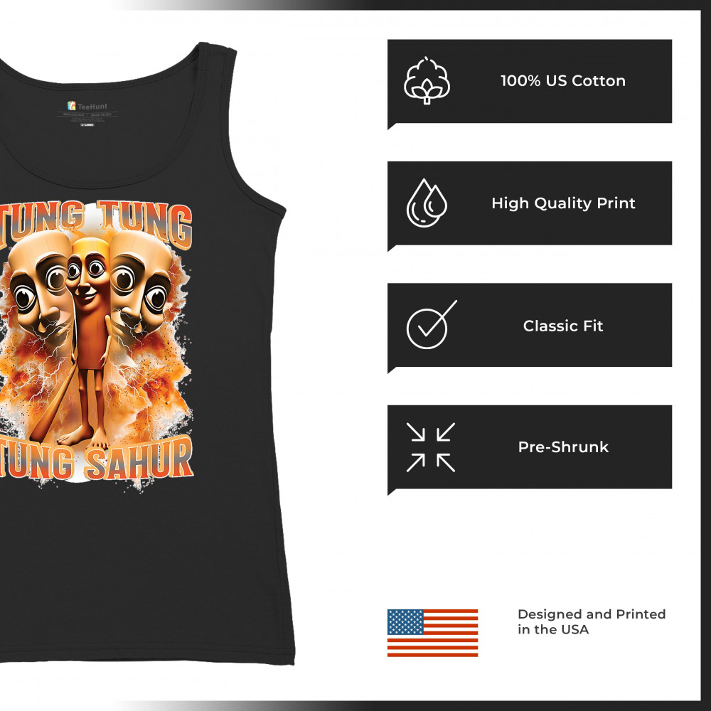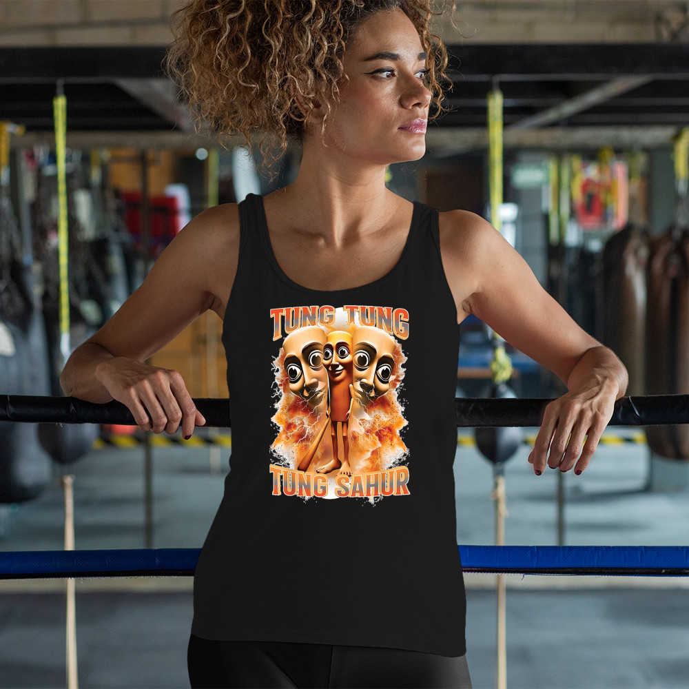 TUNG TUNG TUNG SAHUR women's tank top funny italian brainrot meme vibe black