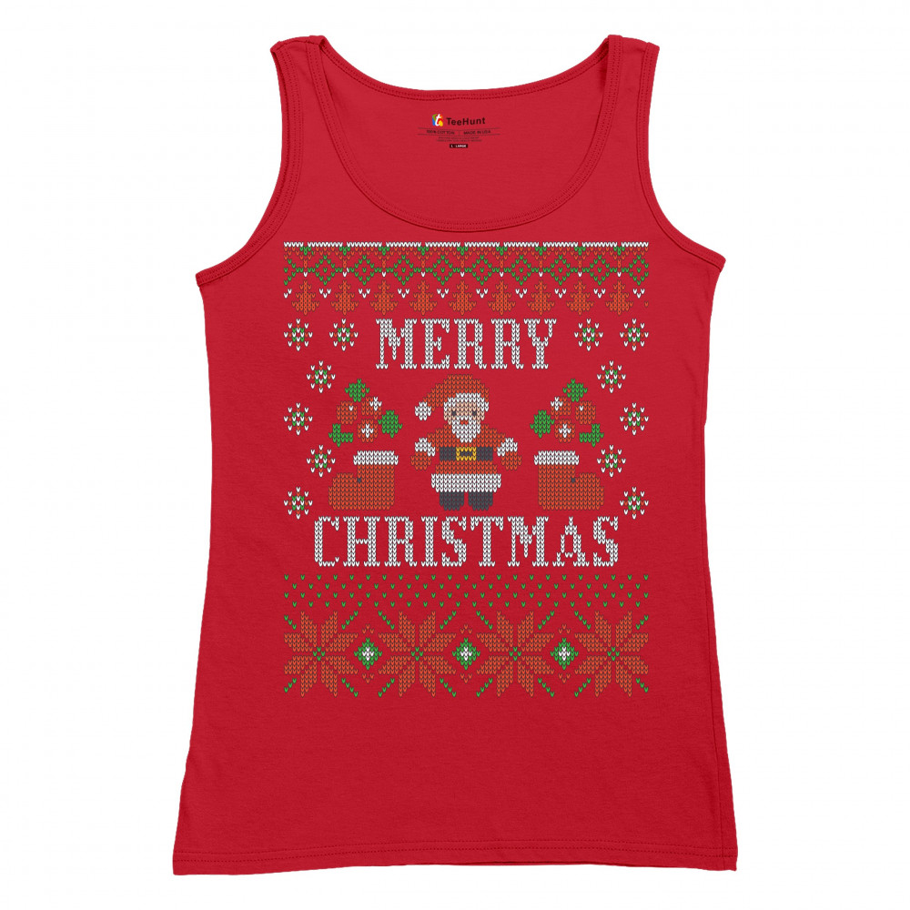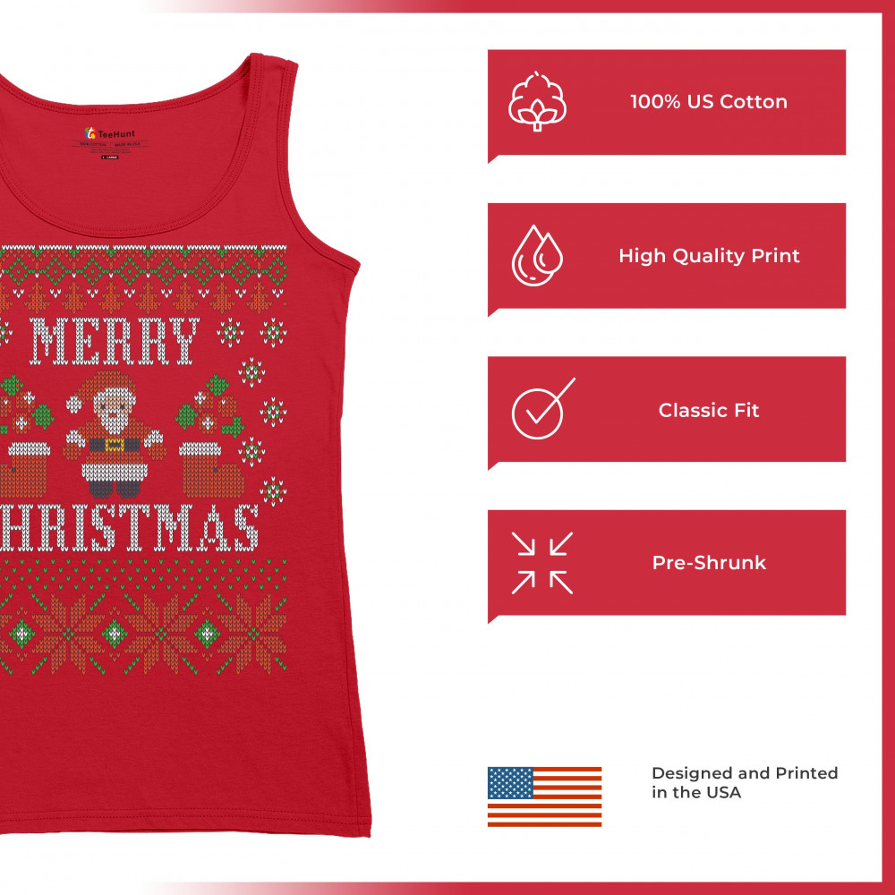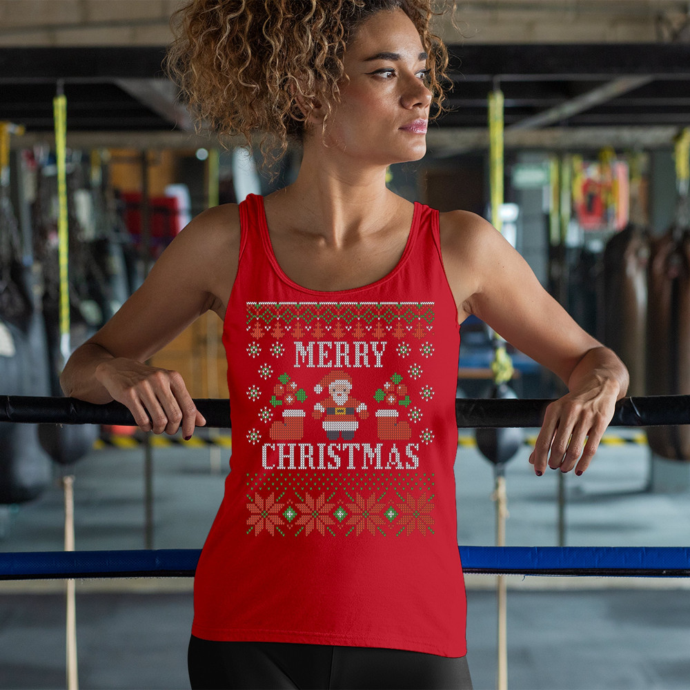 UGLY SWEATER SANTA CLAUS women's tank top let it snow christmas jingle bells red