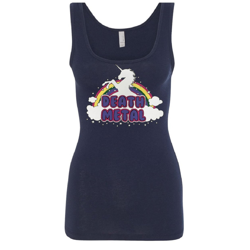 UNICORN DEATH METAL women's tank top rainbow hilarious cute heavy music top navy blue