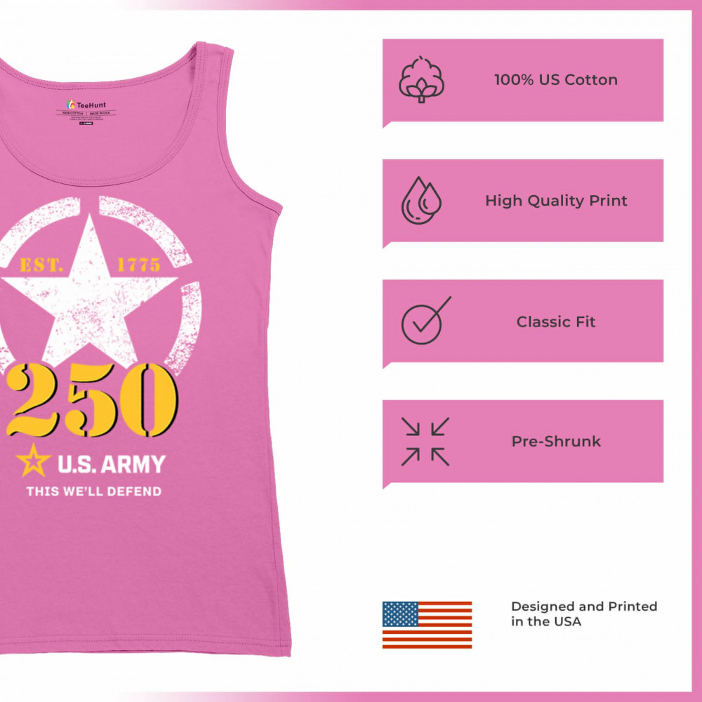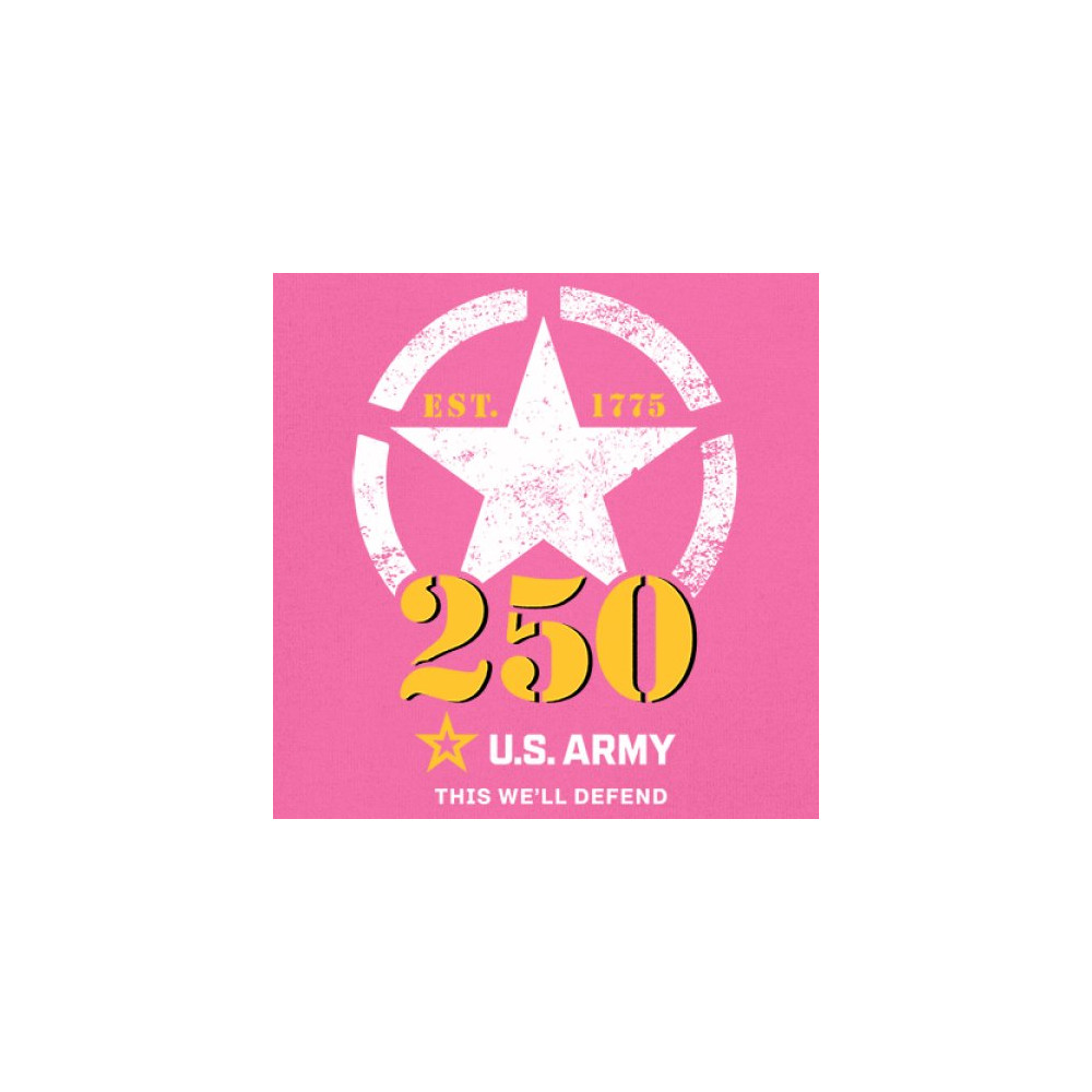 Boldly marking the U.S. Army’s 250th anniversary, this design includes a distressed white star, 1775 EST detail, and bold yellow “250†typeface beneath the iconic motto “This We’ll Defend.†A fitting tribute for veterans, service members, and families who want to show respect and pride during military observances or patriotic events.