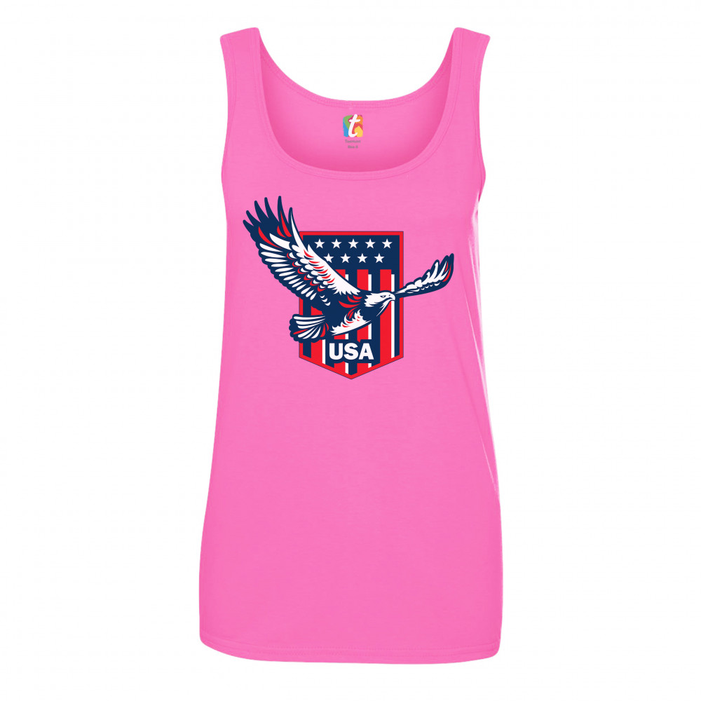 USA BALD EAGLE women's tank top stars and stripes shield 4th of july pink
