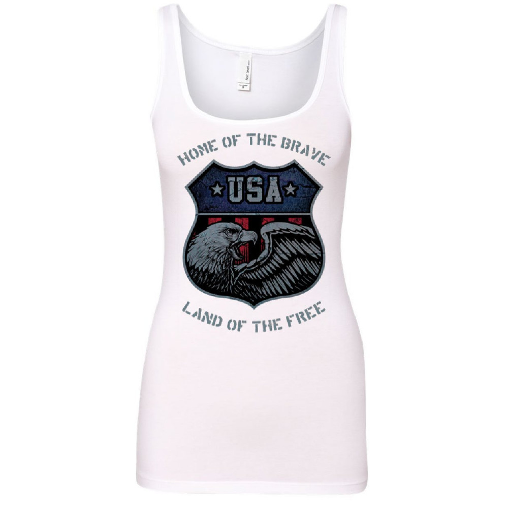 USA SHIELD PATRIOTIC women's tank top home of the brave land of the free top white