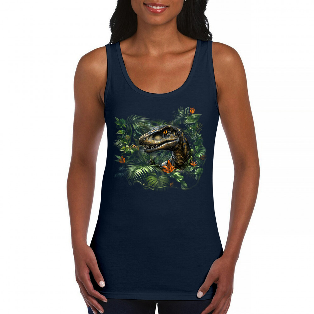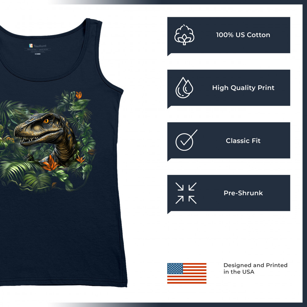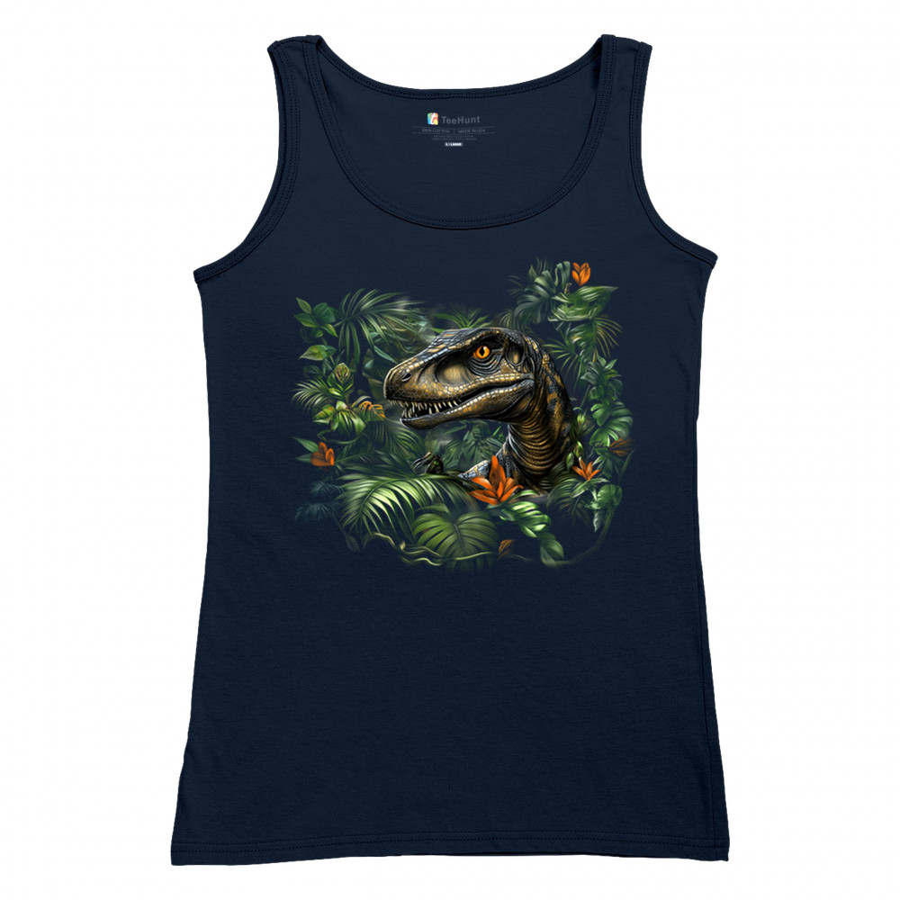 Step into the wild with this striking jungle raptor design. A highly detailed velociraptor peeks from vivid tropical foliage and flowers, perfect for dinosaur lovers, fossil fans, and ancient creature enthusiasts. Whether for Jurassic adventures, museum trips, or themed events, this design unleashes untamed prehistoric energy.