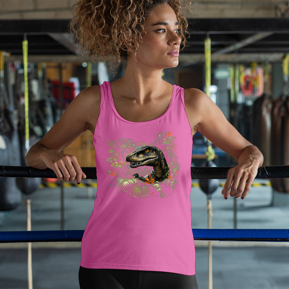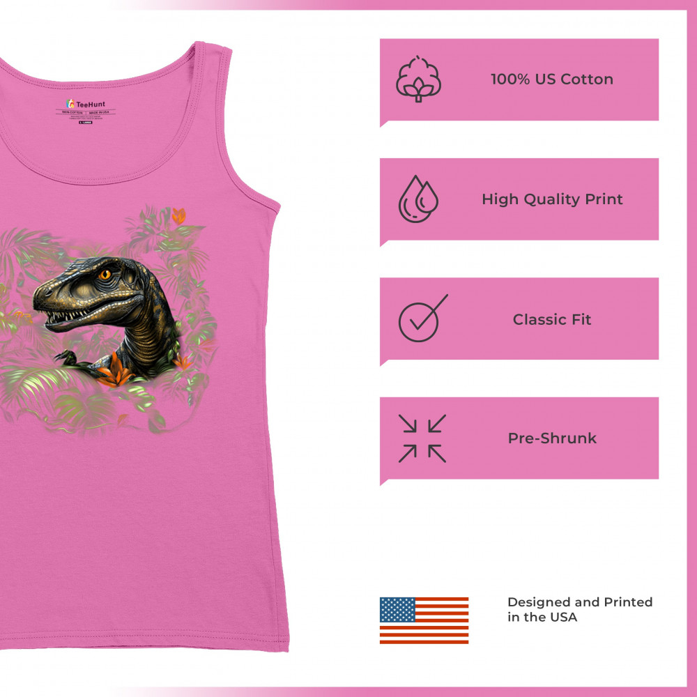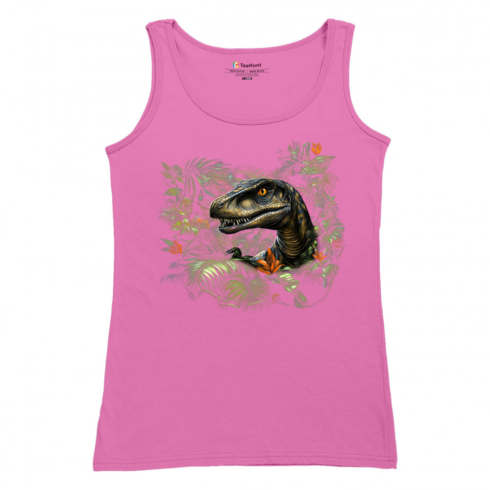 Step into the wild with this striking jungle raptor design. A highly detailed velociraptor peeks from vivid tropical foliage and flowers, perfect for dinosaur lovers, fossil fans, and ancient creature enthusiasts. Whether for Jurassic adventures, museum trips, or themed events, this design unleashes untamed prehistoric energy.