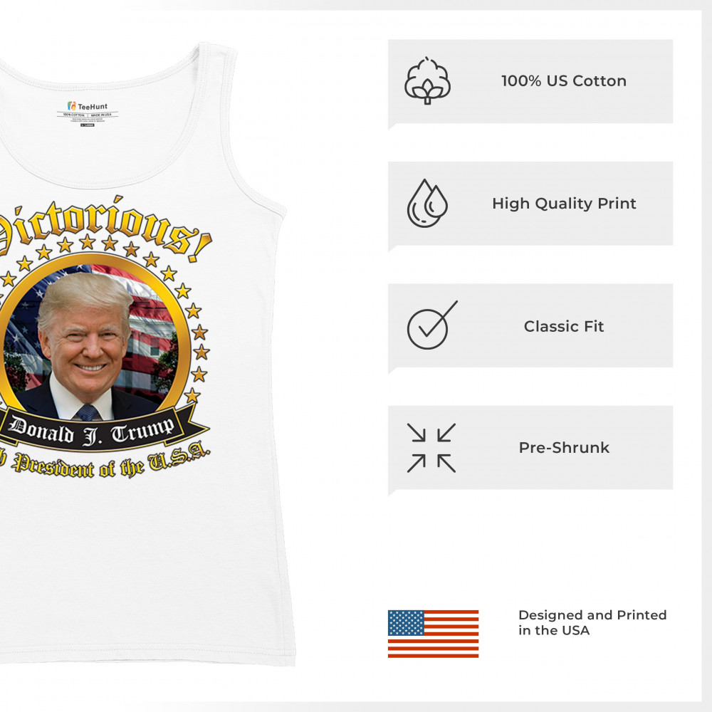 Showcase your support for Trump as the 47th President with this "Victorious" design. Perfect for patriots, America First advocates, and Red Wave supporters.