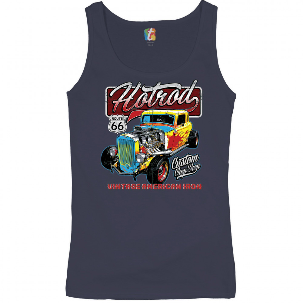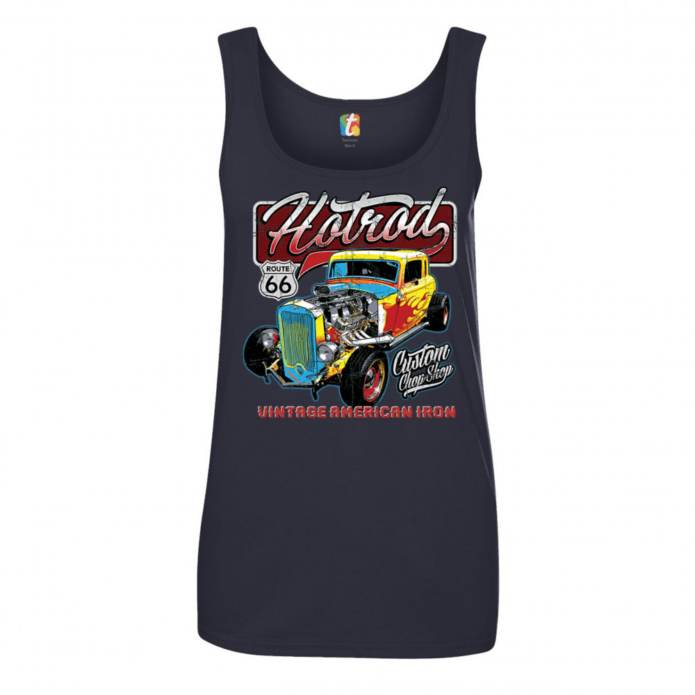 VINTAGE AMERICAN IRON women's tank top hot rod route 66 retro racing navy blue
