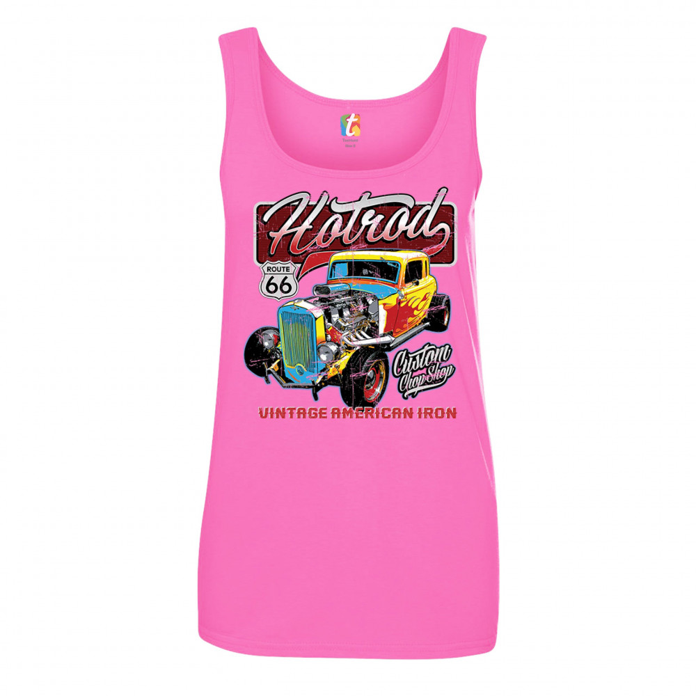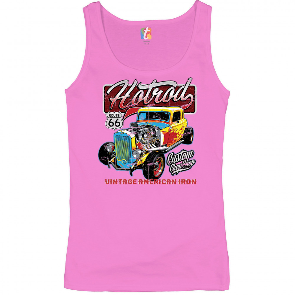 VINTAGE AMERICAN IRON women's tank top hot rod route 66 retro racing pink