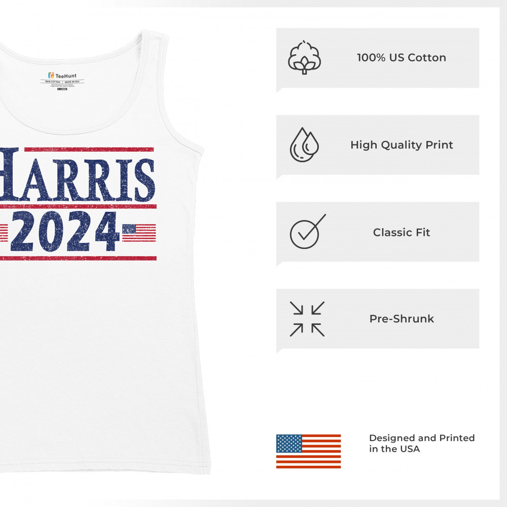 Express your support for Kamala Harris with our "Harris 2024" t-shirt. This design features bold text and American flags, perfect for rallies, events, and everyday wear. Made from high-quality materials, this shirt offers both comfort and durability. It's an ideal choice for those who believe in a progressive future and want to show their support for the first female president. Wear it with pride and make a statement!