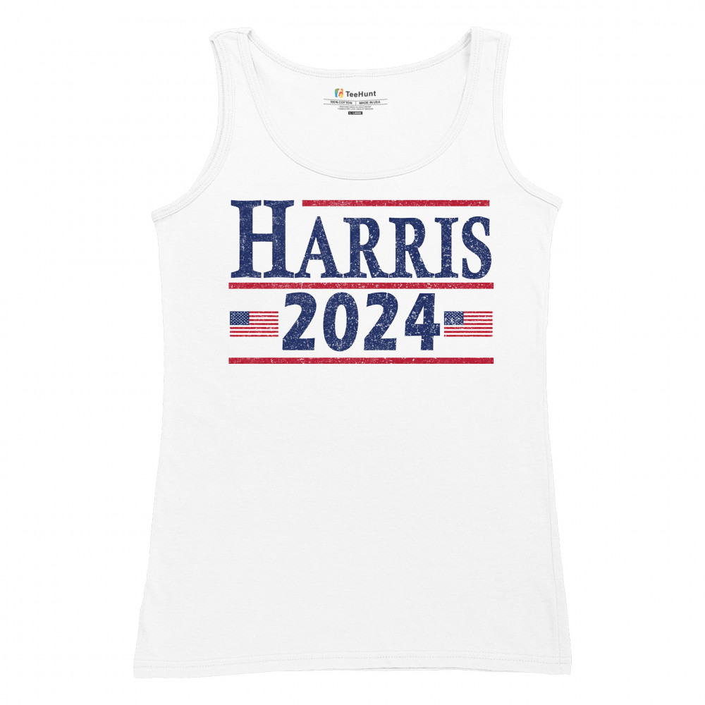 Show your support for Kamala Harris with this bold "Harris 2024" t-shirt, featuring American flags. Perfect for rallies and events. Join the movement today!