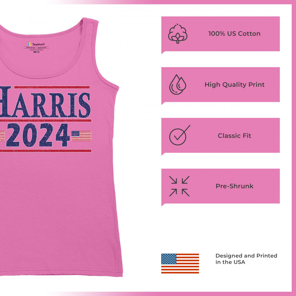 Express your support for Kamala Harris with our "Harris 2024" t-shirt. This design features bold text and American flags, perfect for rallies, events, and everyday wear. Made from high-quality materials, this shirt offers both comfort and durability. It's an ideal choice for those who believe in a progressive future and want to show their support for the first female president. Wear it with pride and make a statement!