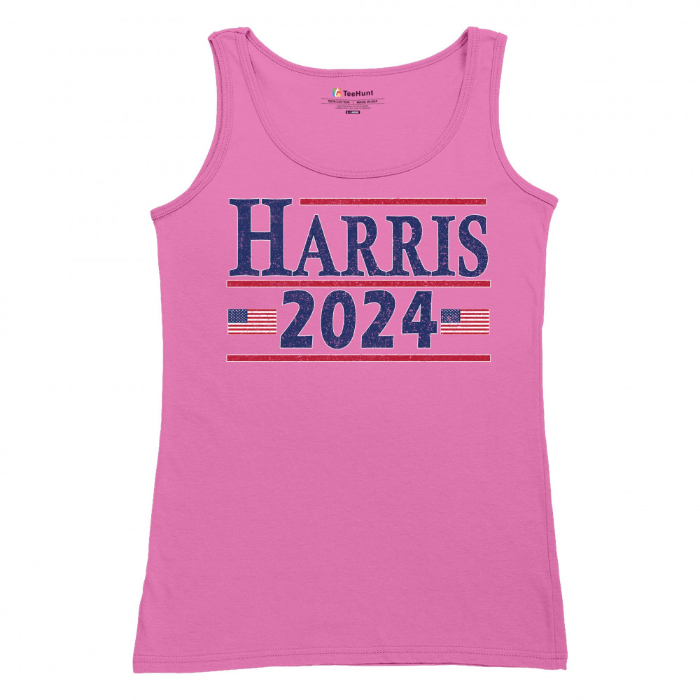 Show your support for Kamala Harris with this bold "Harris 2024" t-shirt, featuring American flags. Perfect for rallies and events. Join the movement today!