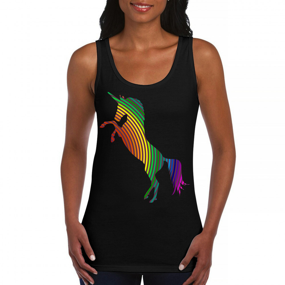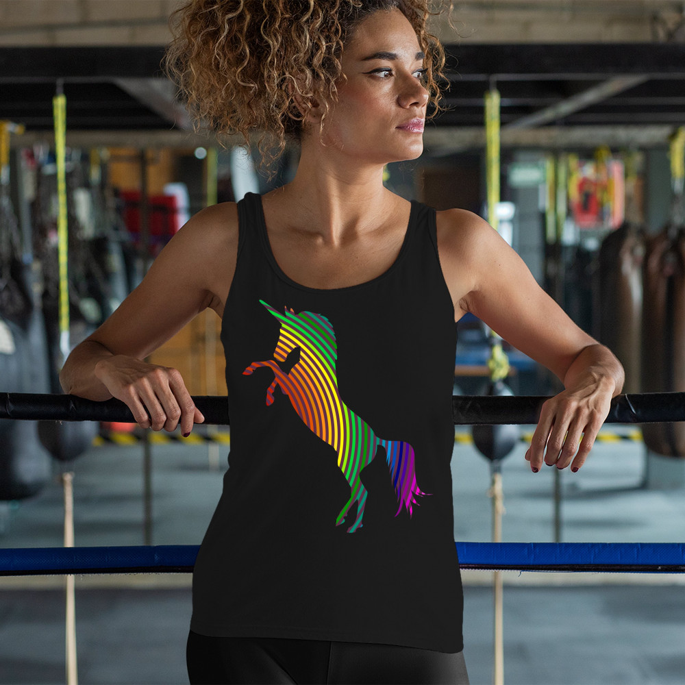 VIVID RAINBOW-STRIPE REARING women's tank top lgbtq+ queer gay pride black