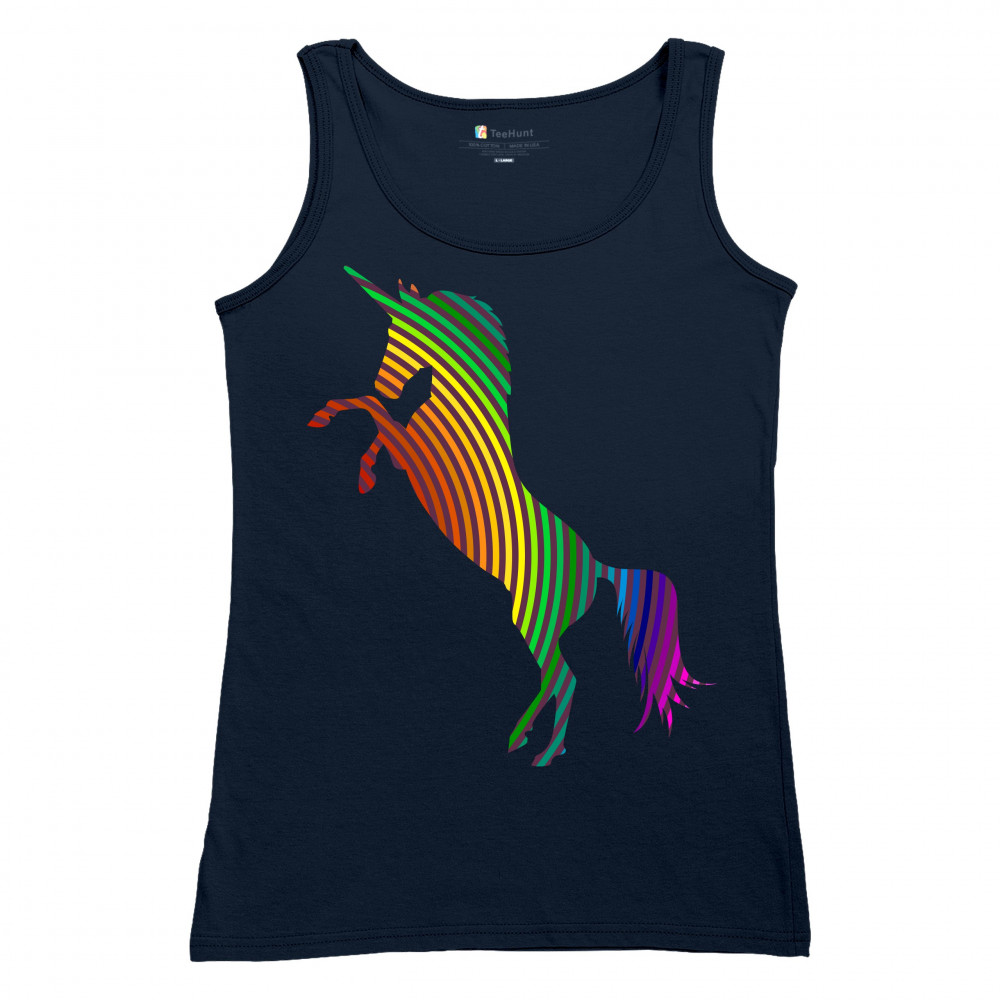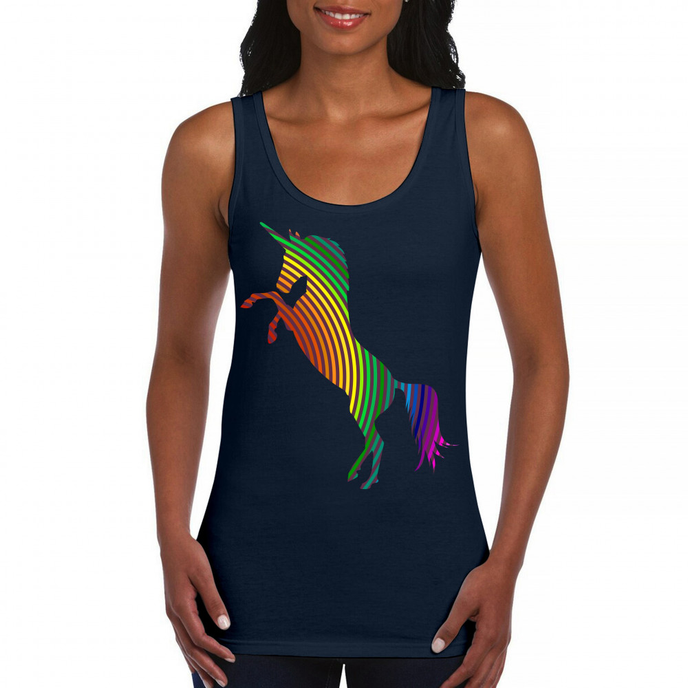 VIVID RAINBOW-STRIPE REARING women's tank top lgbtq+ queer gay pride navy blue