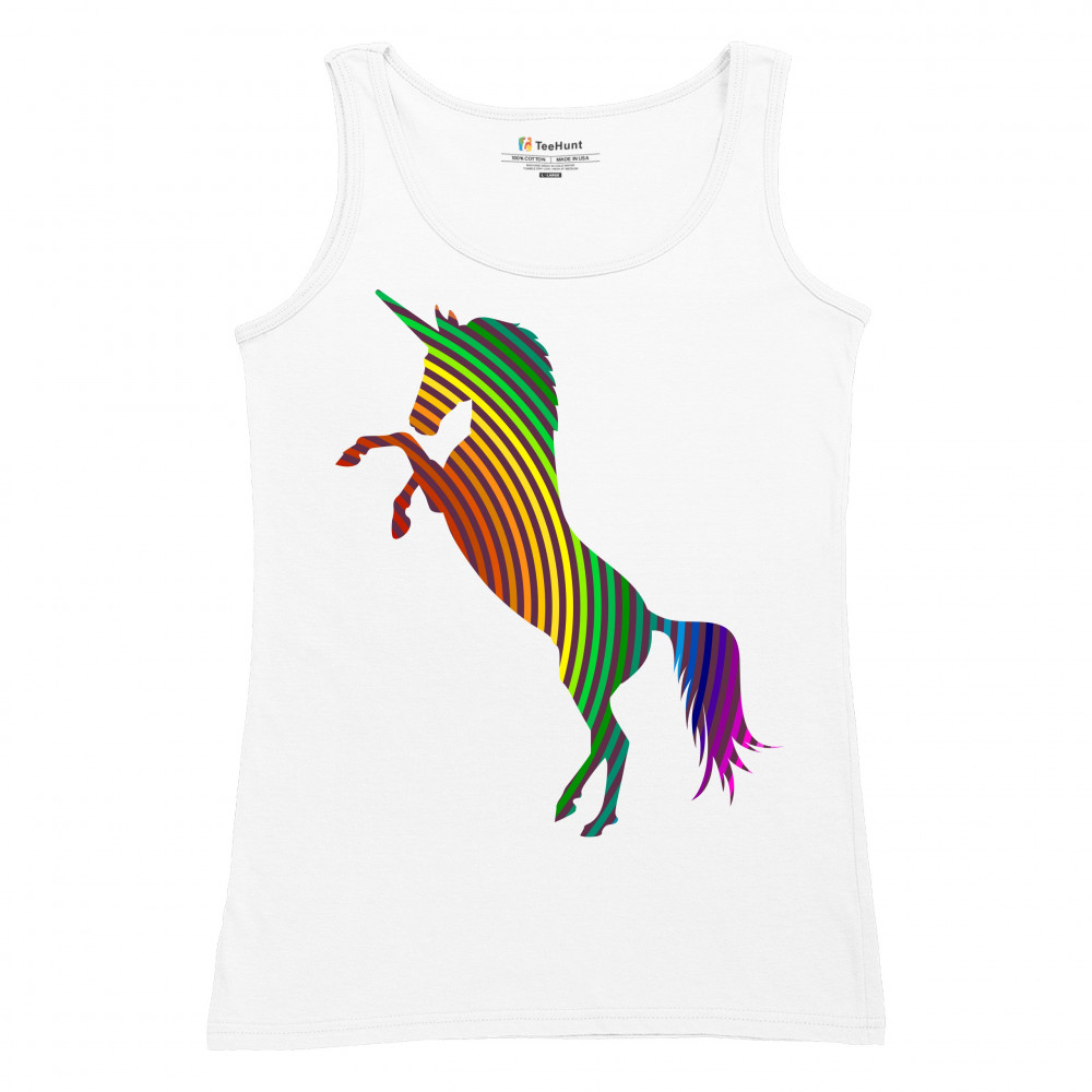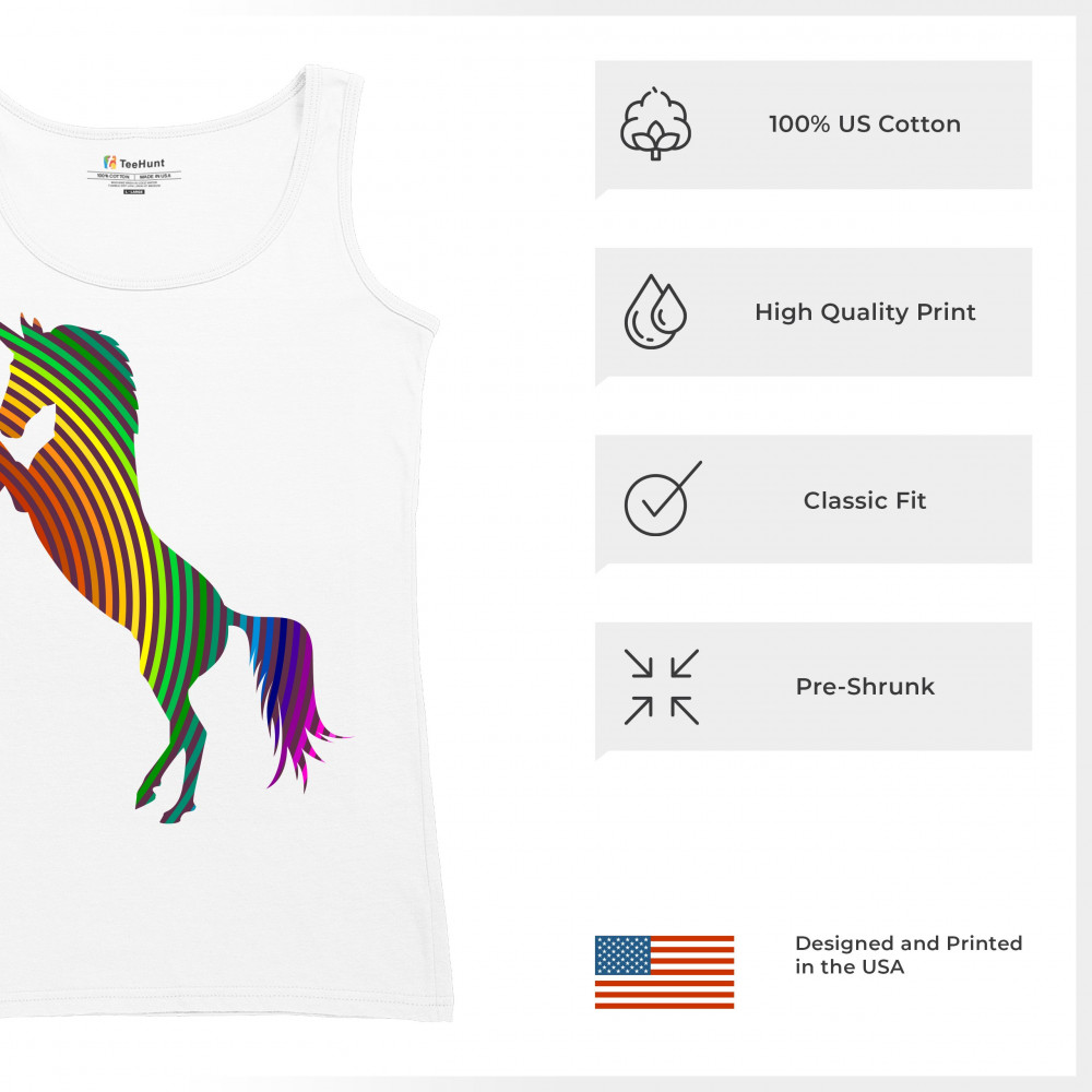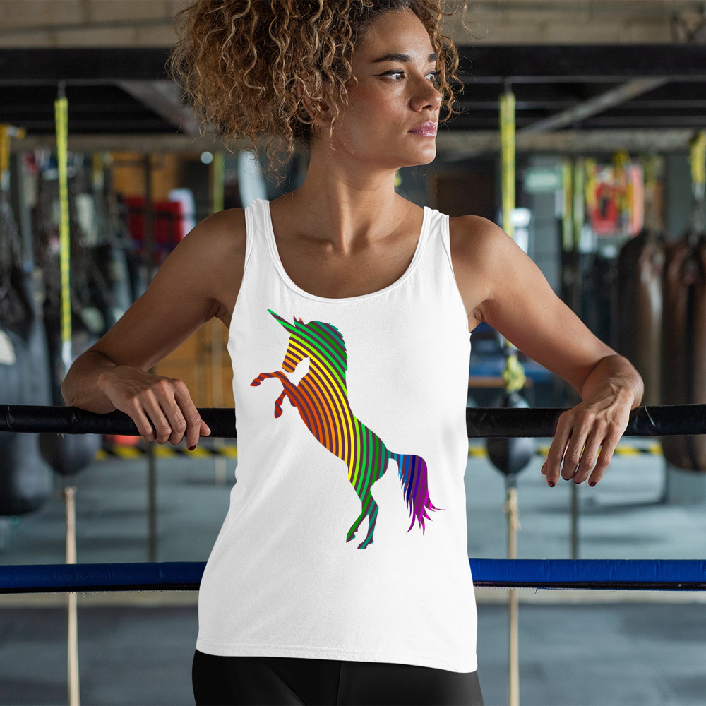 VIVID RAINBOW-STRIPE REARING women's tank top lgbtq+ queer gay pride white