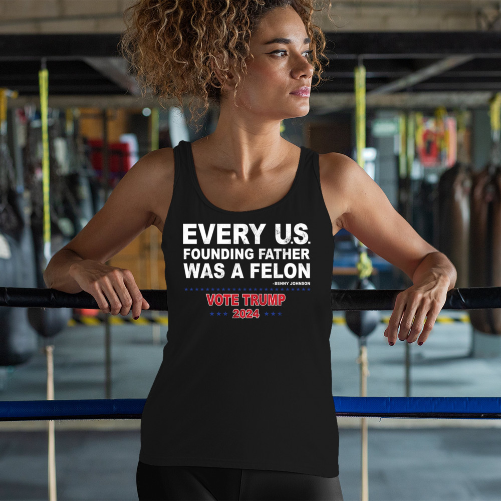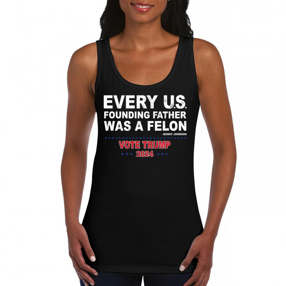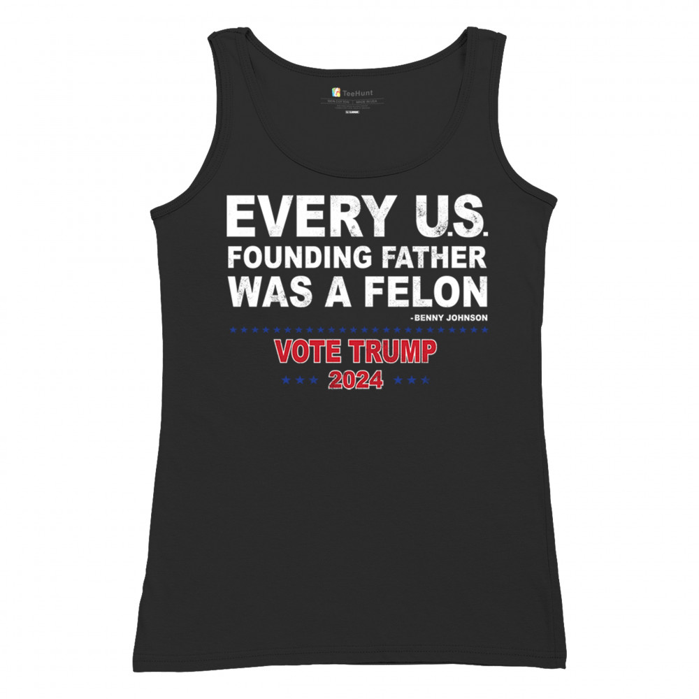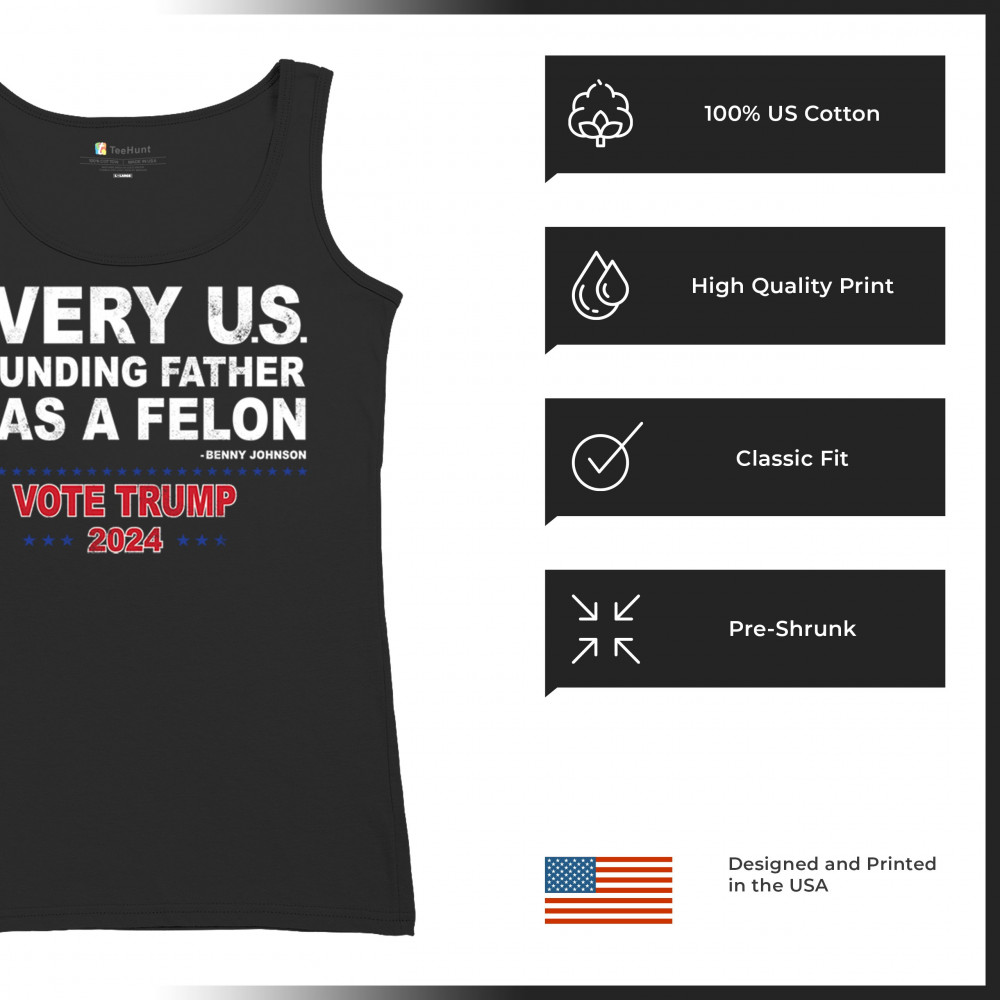 Show your support for Trump 2024 with a bold design quoting "Every U.S. founding father was a felon." Stand against political attacks and support an America-first vision.