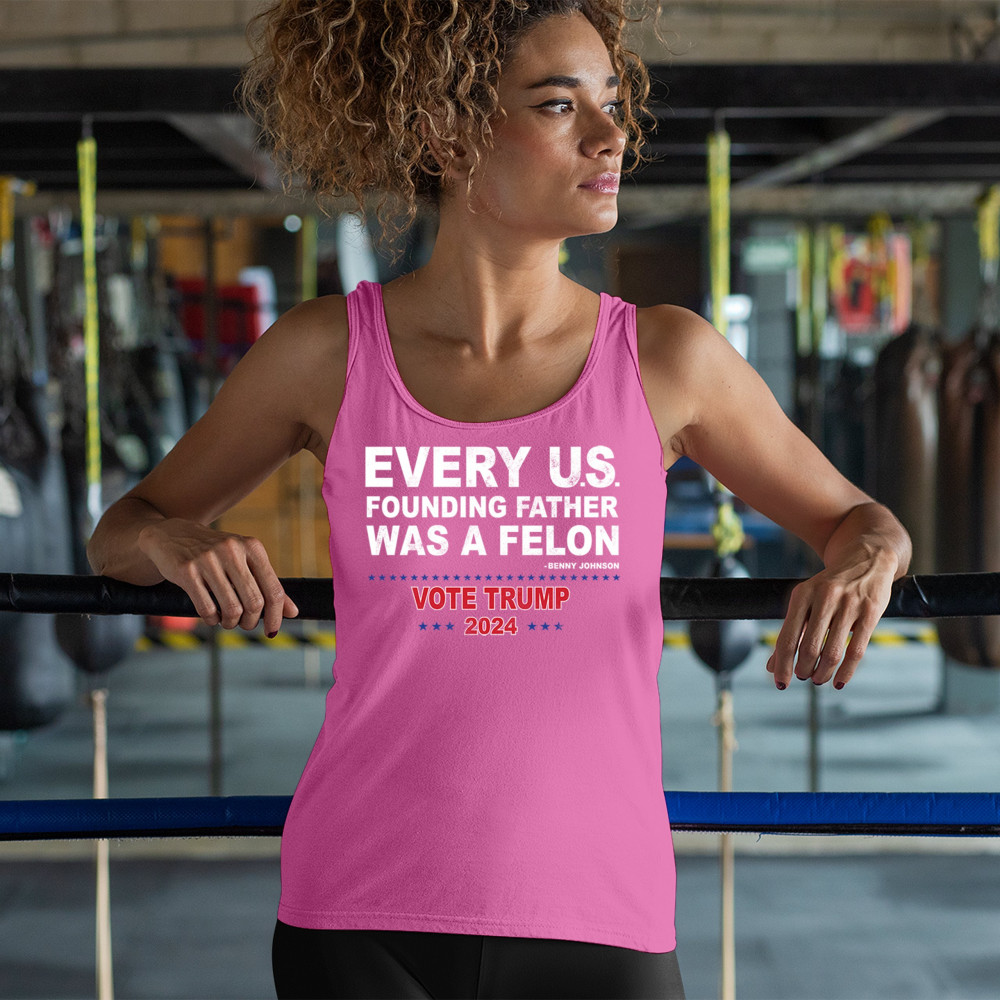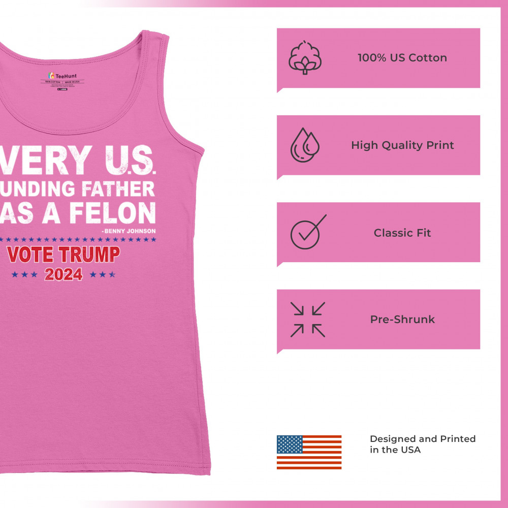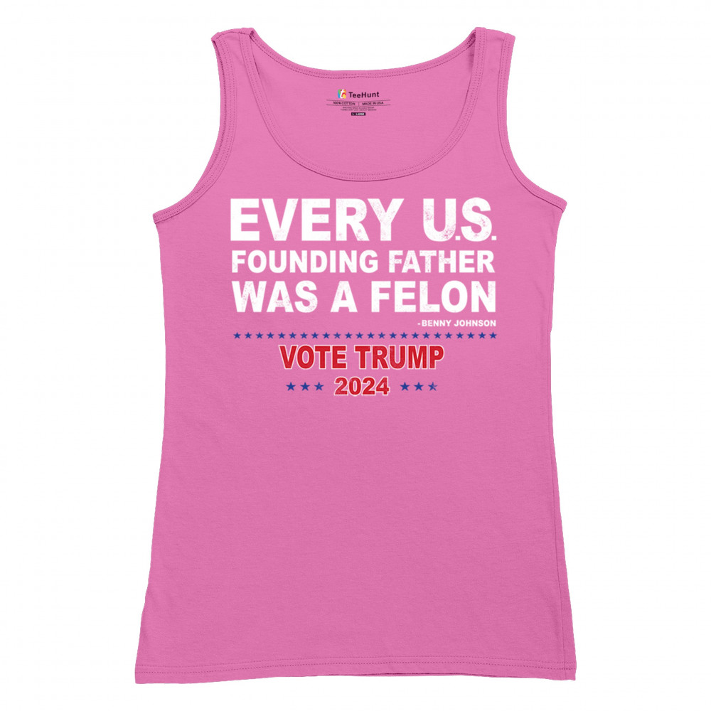 Show your support for Trump 2024 with a bold design quoting "Every U.S. founding father was a felon." Stand against political attacks and support an America-first vision.