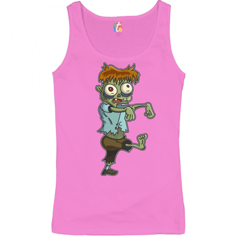 A print featuring a zombie, walking in a stereotypical movie fashion with the arms extended forward. The zombie has messy ginger hair and eyes popping out but he looks rather funny and non-threatening. A great choice for a person who is into horror movies