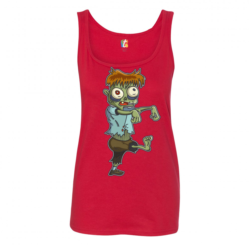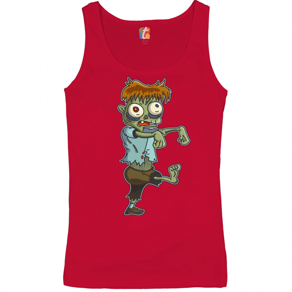 A print featuring a zombie, walking in a stereotypical movie fashion with the arms extended forward. The zombie has messy ginger hair and eyes popping out but he looks rather funny and non-threatening. A great choice for a person who is into horror movies