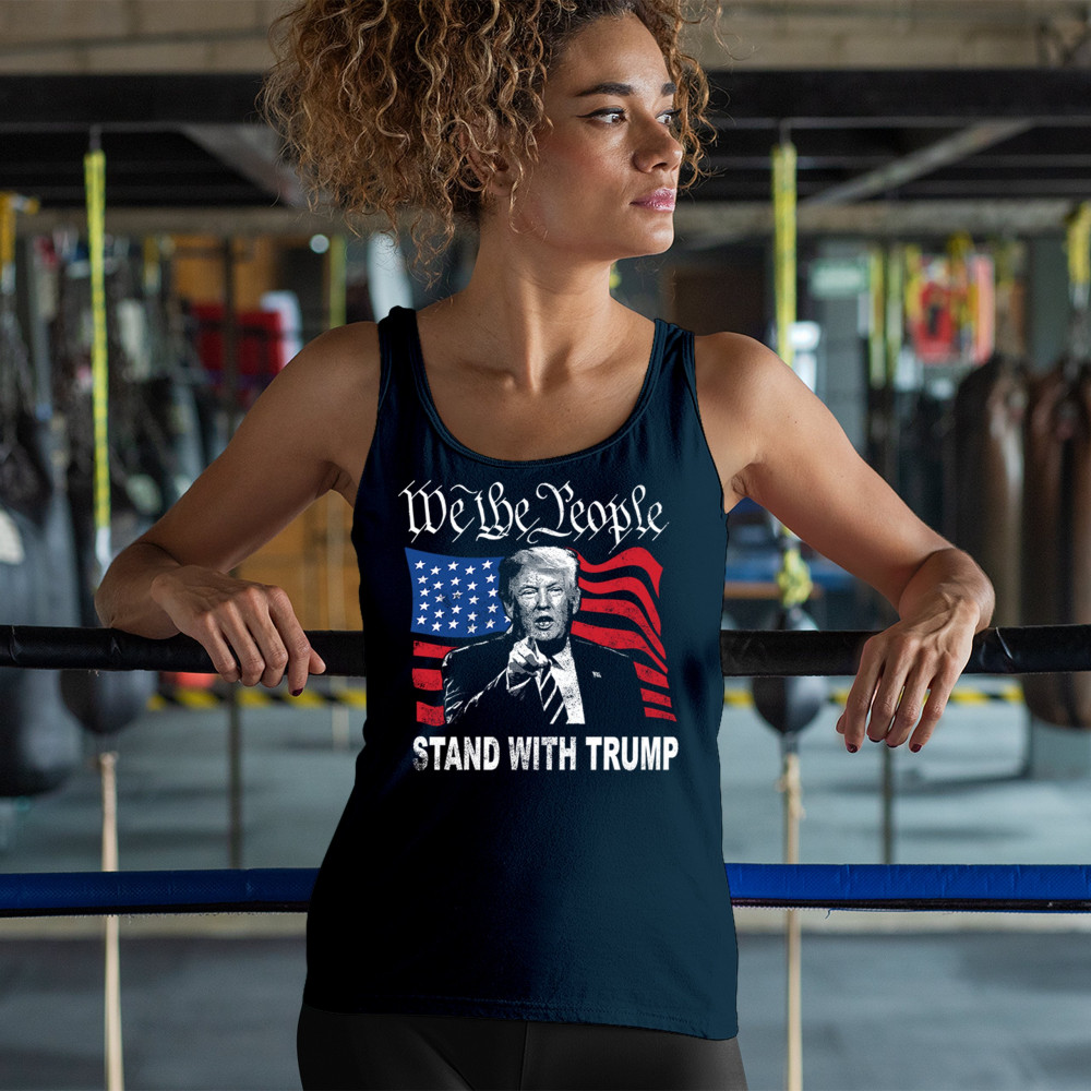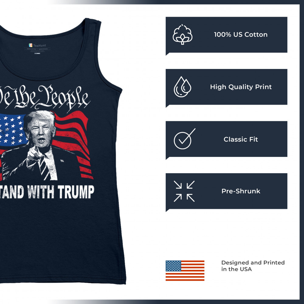 Show your support for Trump with the "We the People Stand with Trump" design. A powerful symbol of patriotism, featuring Trump and the American flag. Stand up for conservative values.