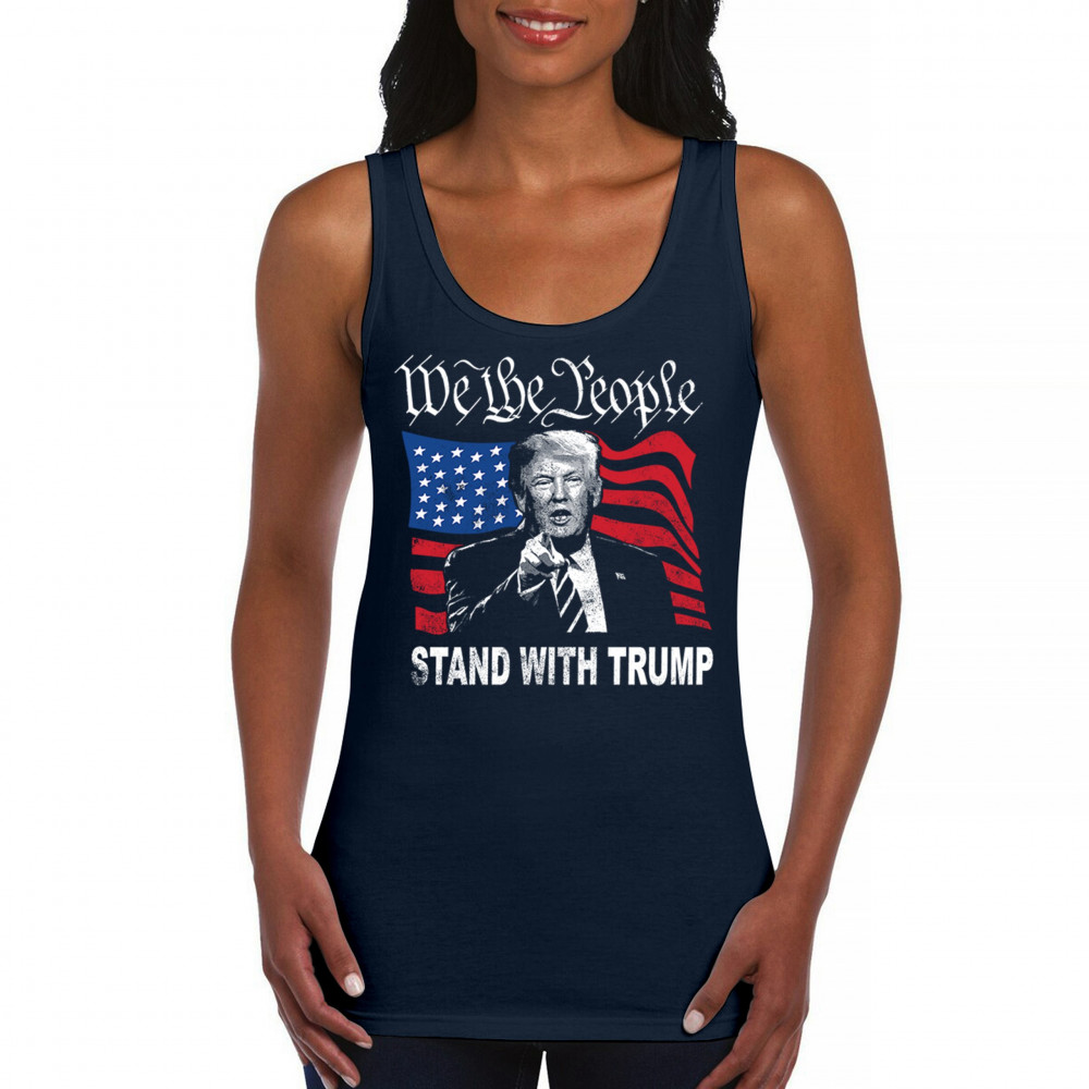 Express your allegiance to President Trump with the "We the People Stand with Trump" design. This compelling design showcases a determined Trump pointing forward, set against the iconic American flag, symbolizing strength and patriotism. It's a perfect choice for rallies and gatherings, proudly representing conservative values and the fight against leftist agendas. Stand up for America's future and make a statement with this design, supporting the principles of freedom and democracy. An essential addition for any Trump supporter dedicated to the conservative cause.