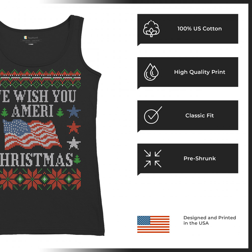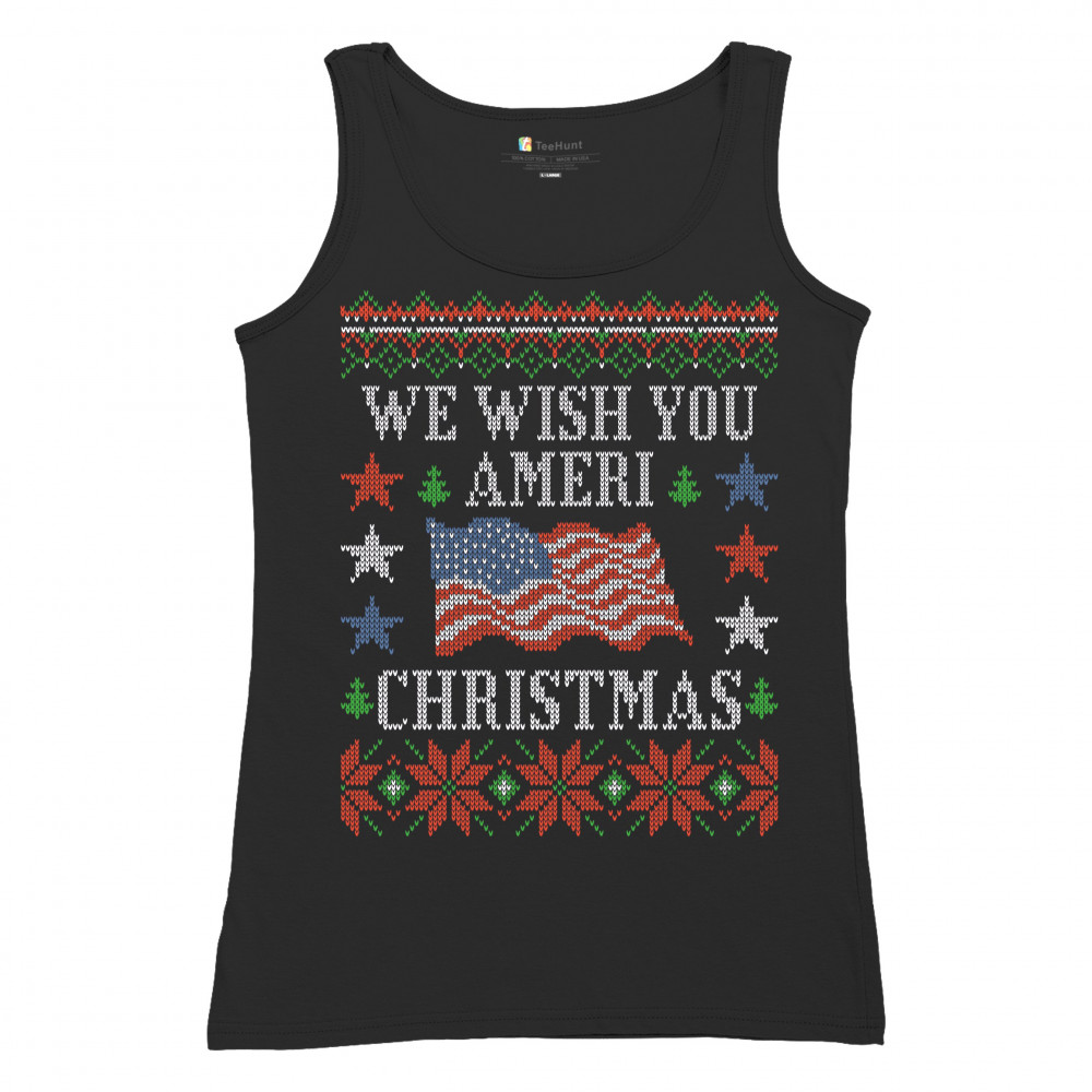 WE WISH YOU AMERI CHRISTMAS women's tank top ugly sweater american flag black