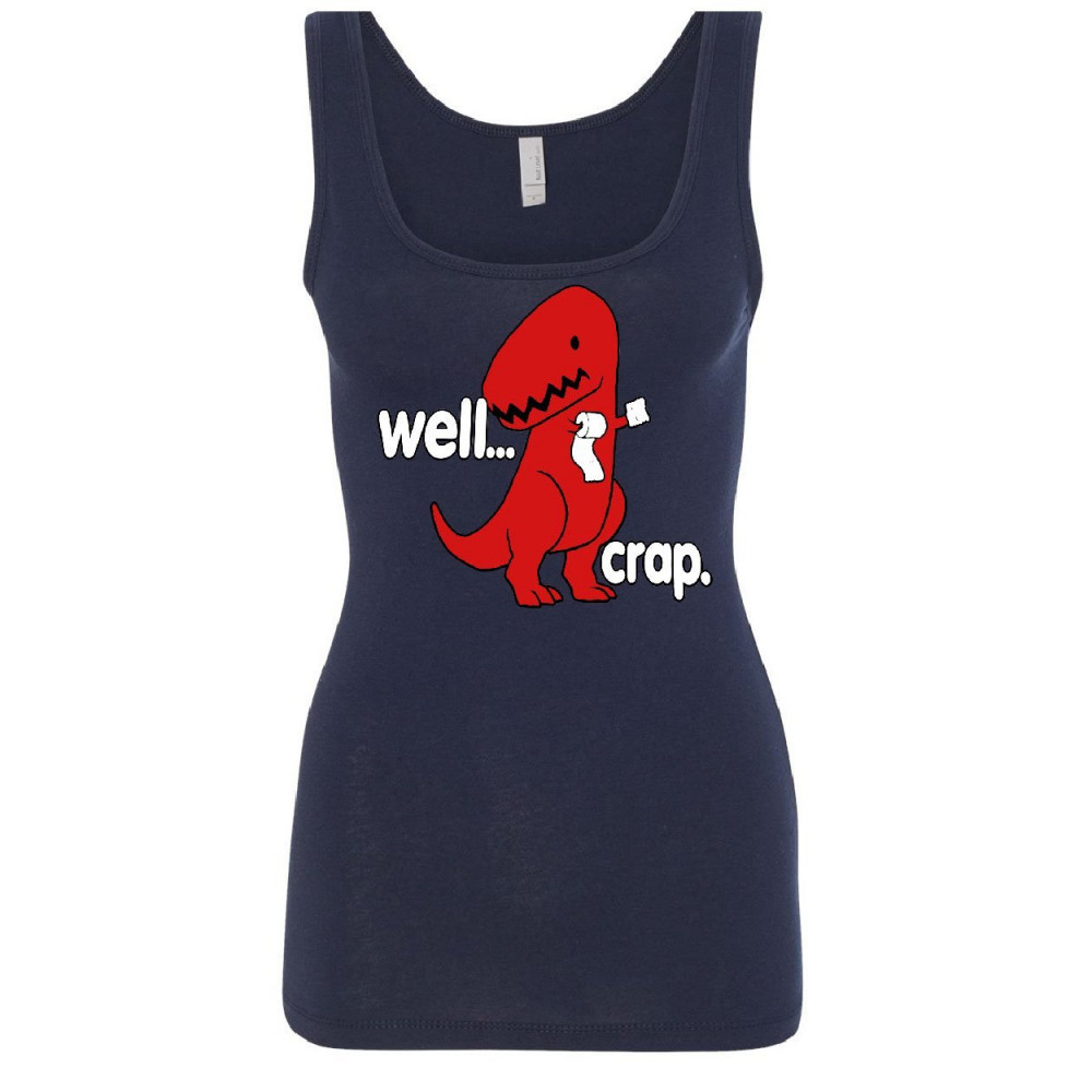 WELL CRAP T-REX well crap women's tank top funny t-rex fail short hands tyrannosaurus top navy blue