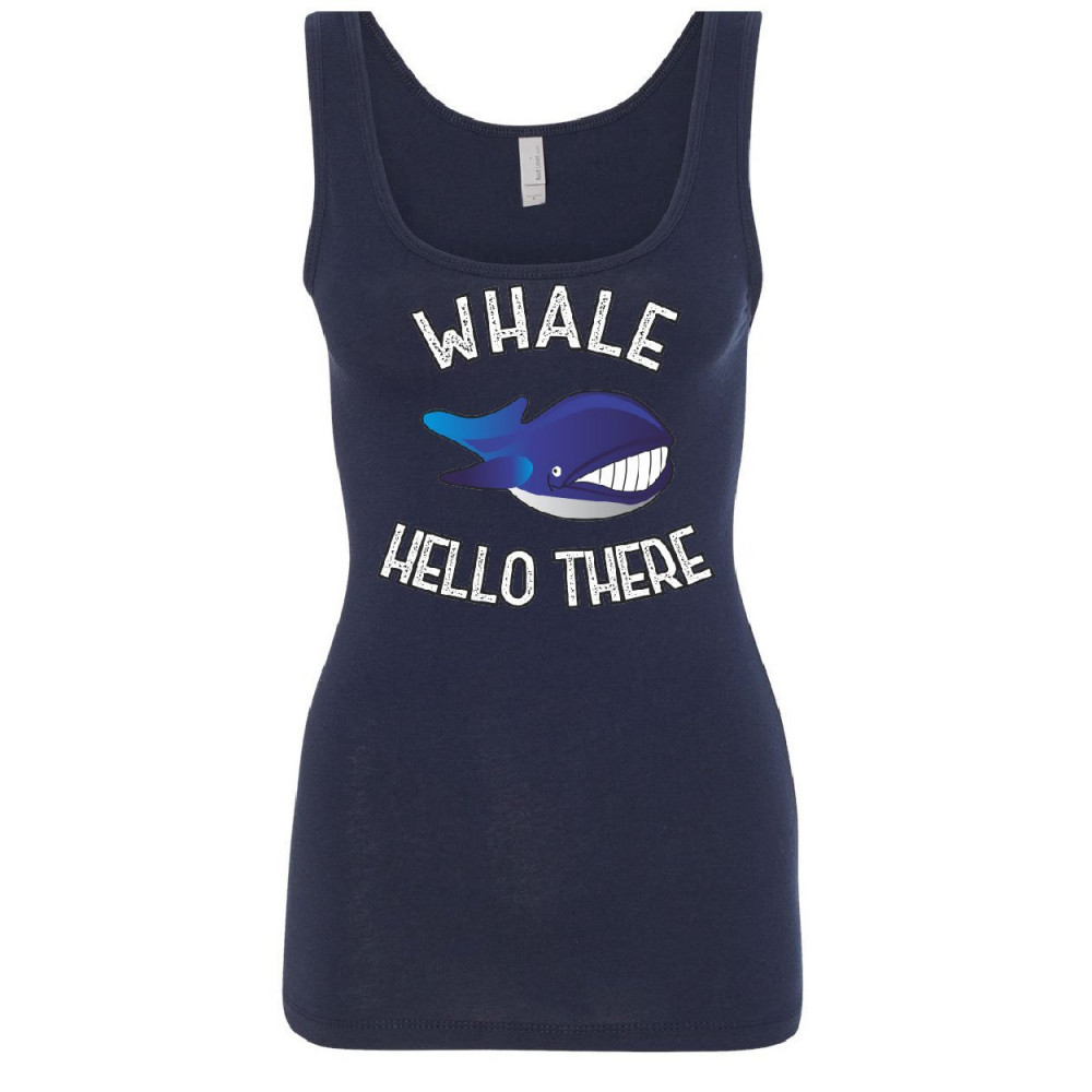 WHALE HELLO THERE women's tank top funny wildlife ocean cute pun wordplay top navy blue