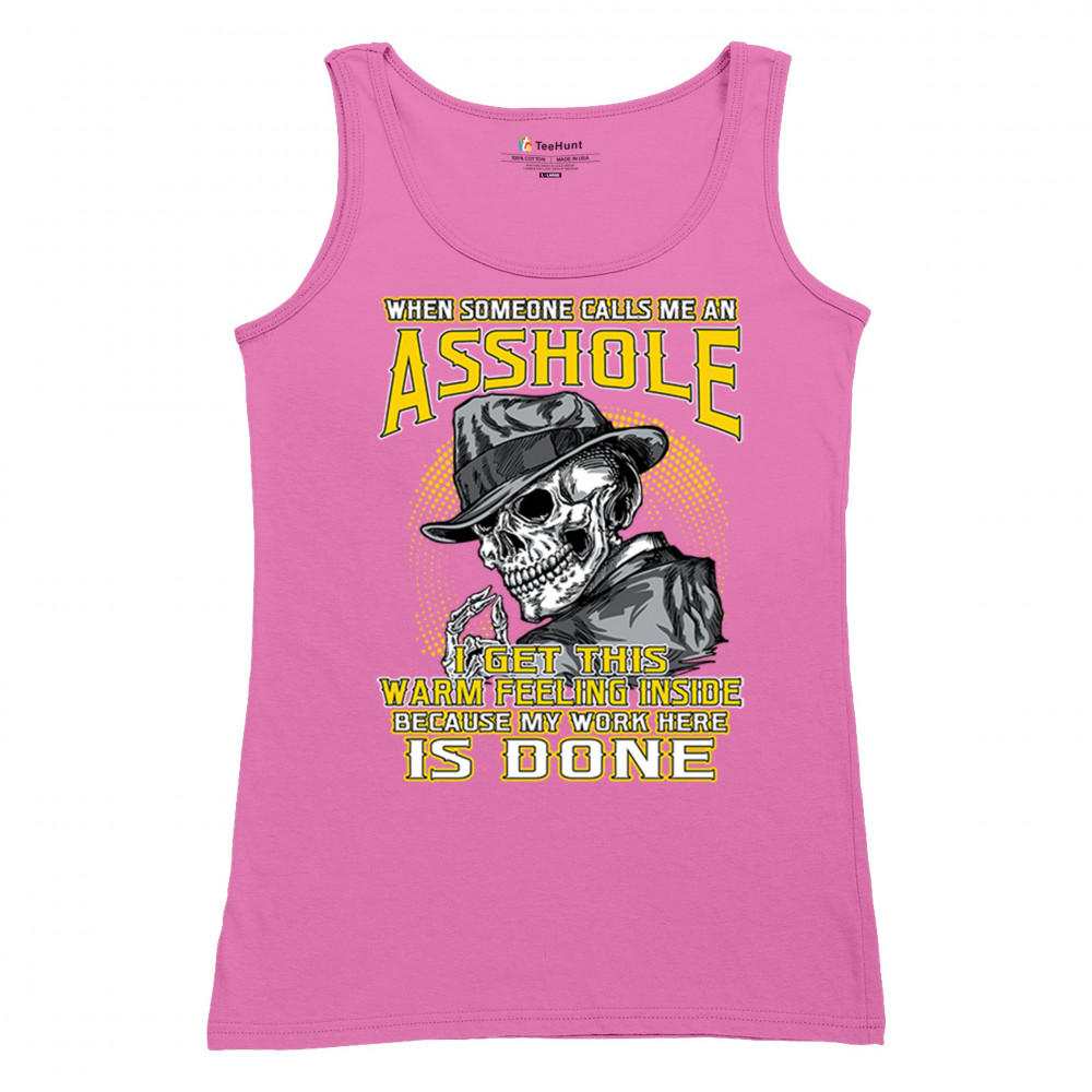 This badass design features a smirking skull in a fedora with a cigarette, backed by the line: “When someone calls me an asshole... my work here is done.†Built for dark humor fans, skull art lovers, and those who live life with sharp wit and zero regrets. Ideal for biker rallies, sarcasm nights, or anyone owning their attitude with pride.