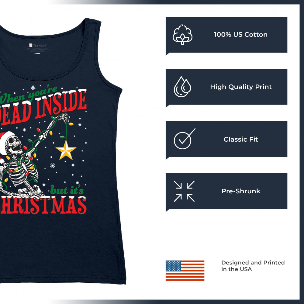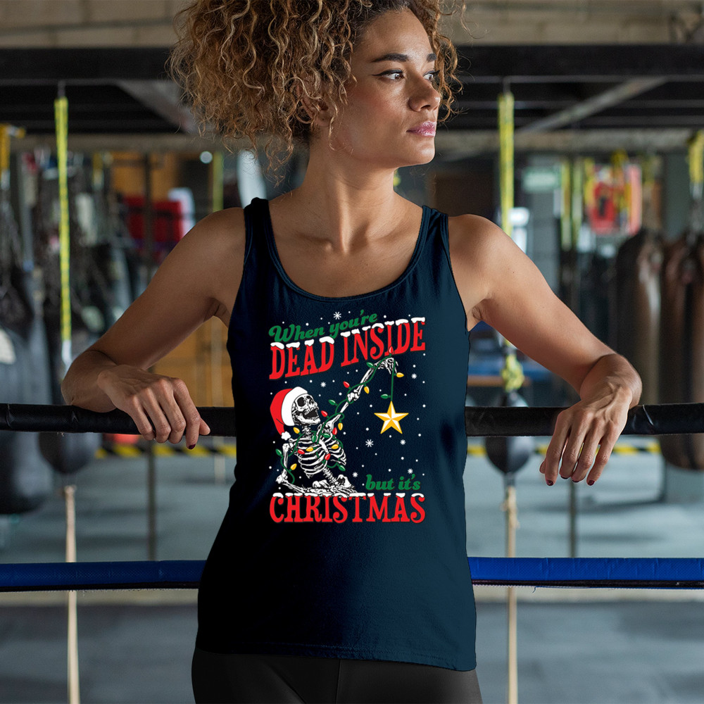 Celebrate humor and holiday spirit with the "When You're Dead Inside But It's Christmas" skeleton design. Perfect for parties and unique gifts.
