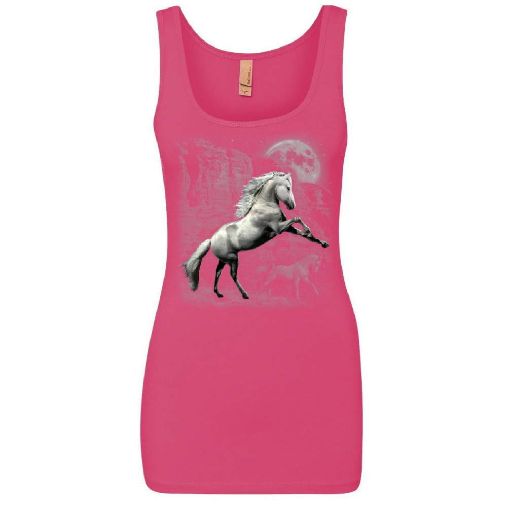 WHITE WILD HORSE women's tank top mustang nature animal lovers wildlife top pink