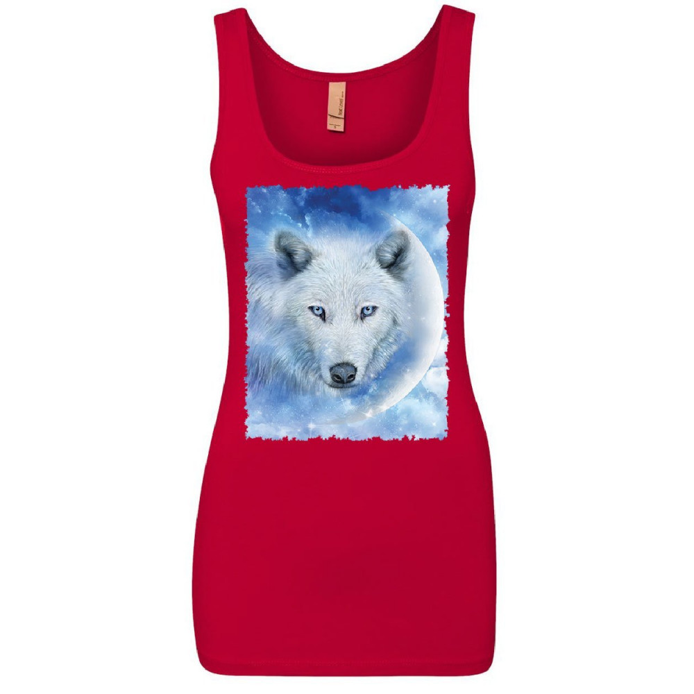WHITE WOLF women's tank top wildlife animal moon howl nature wolfpack top red