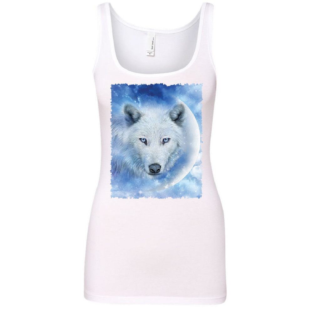 WHITE WOLF women's tank top wildlife animal moon howl nature wolfpack top white