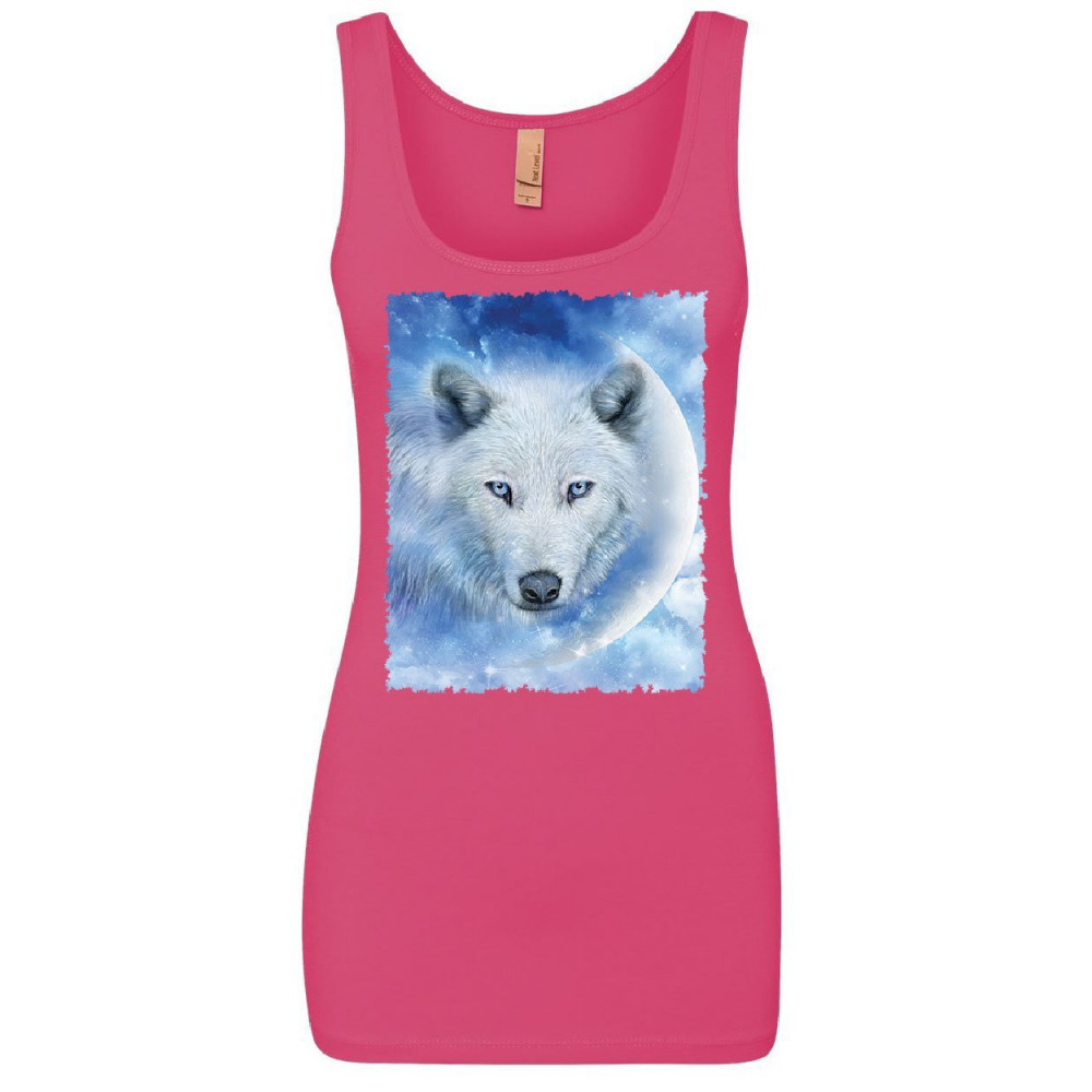 WHITE WOLF women's tank top wildlife animal moon howl nature wolfpack top pink