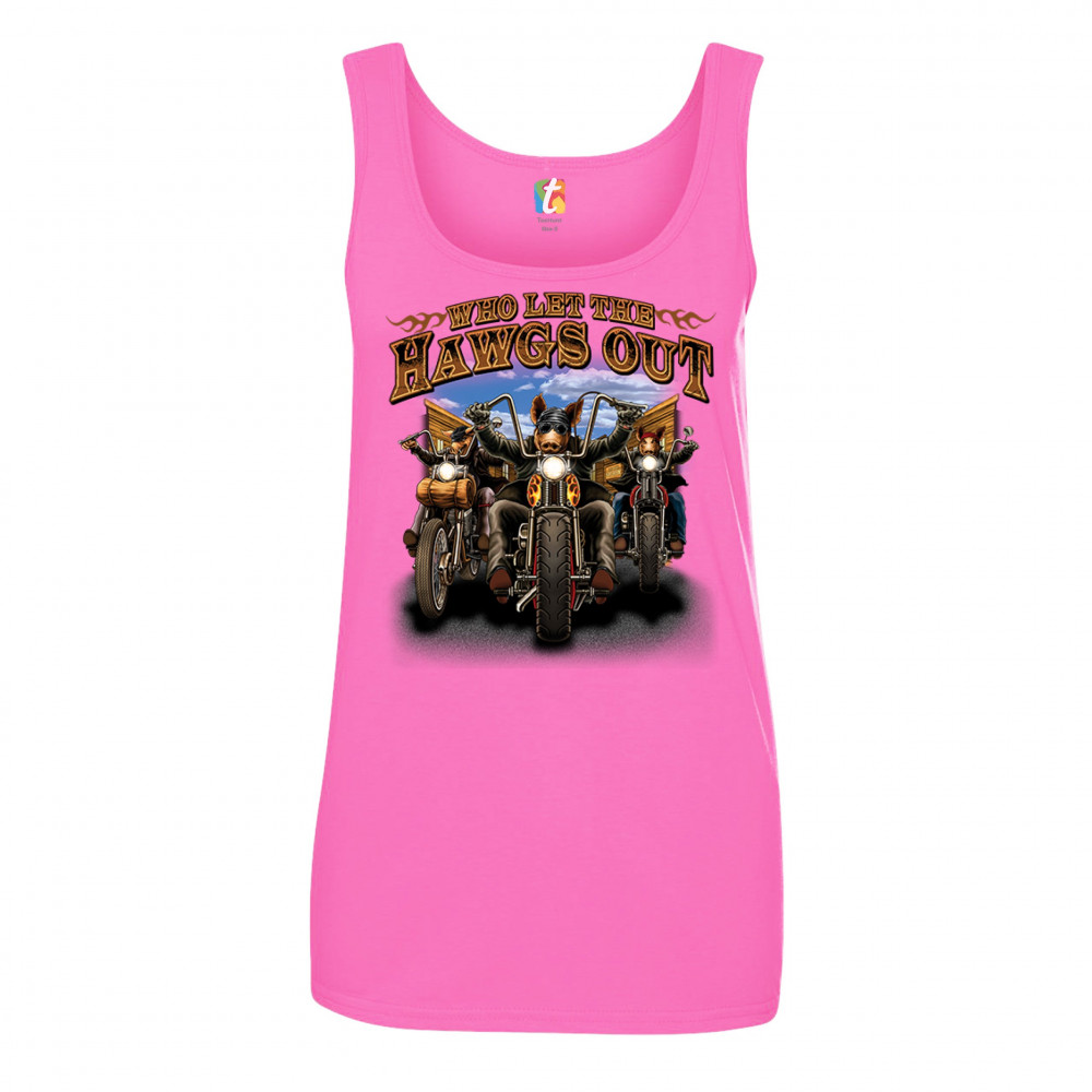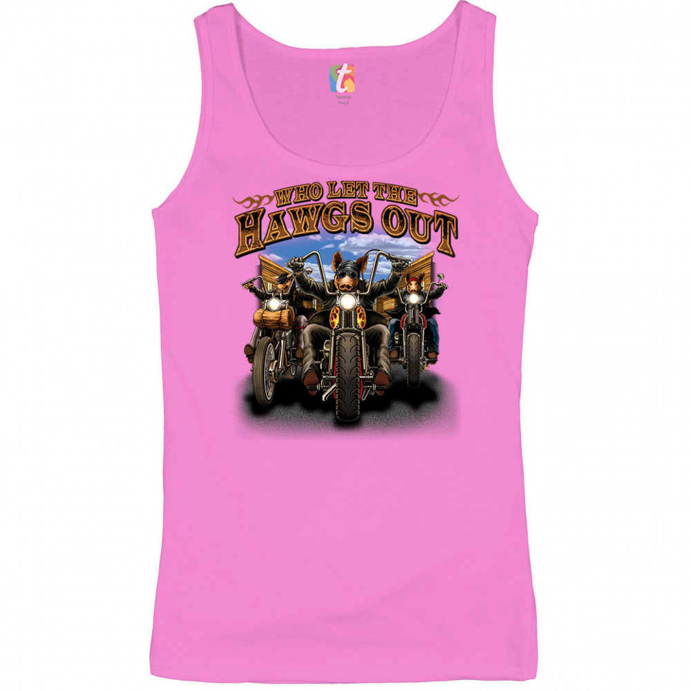 WHO LET THE HAWGS OUT women's tank top biker motorcycle gang live to ride pink